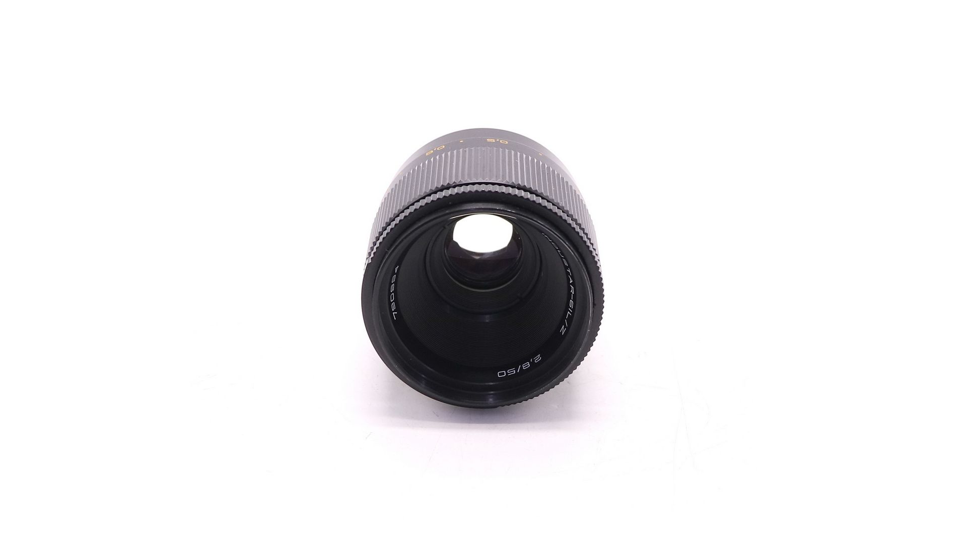 – Отличительные особенности: фокусное расстояние 50 мм, светосила f/2.8, оптическая схема Тессар, минимальная дистанция фокусировки 30 см, звёздчатая диафрагма