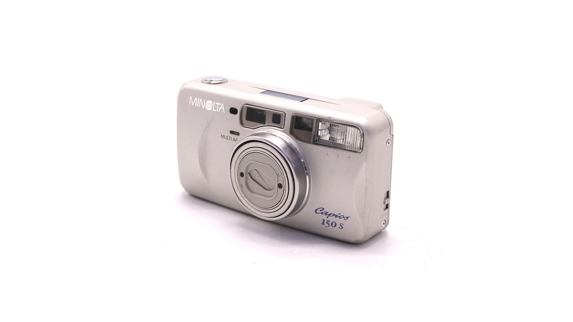 Minolta Capios 150s — компактный плёночный фотоаппарат с автофокусом и зум-объективом 37.5-150 мм, созданный для удобной и разнообразной съёмки.