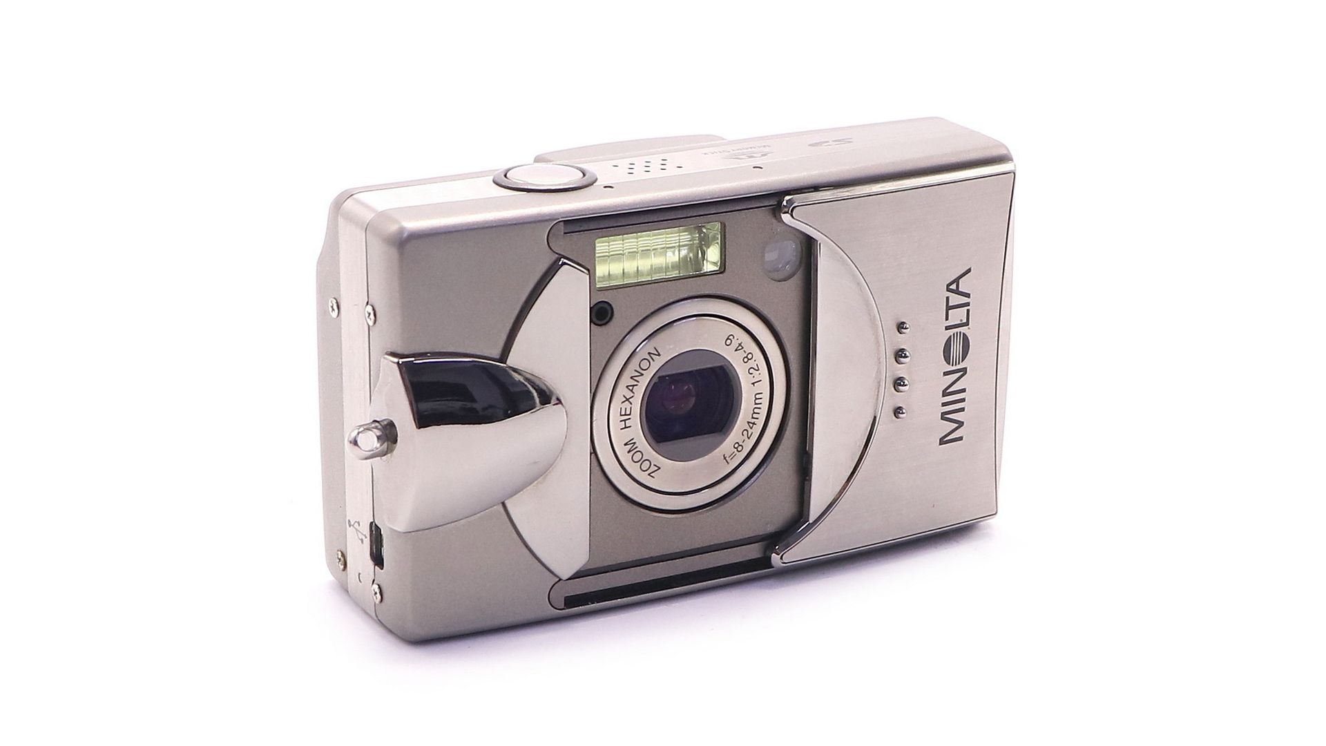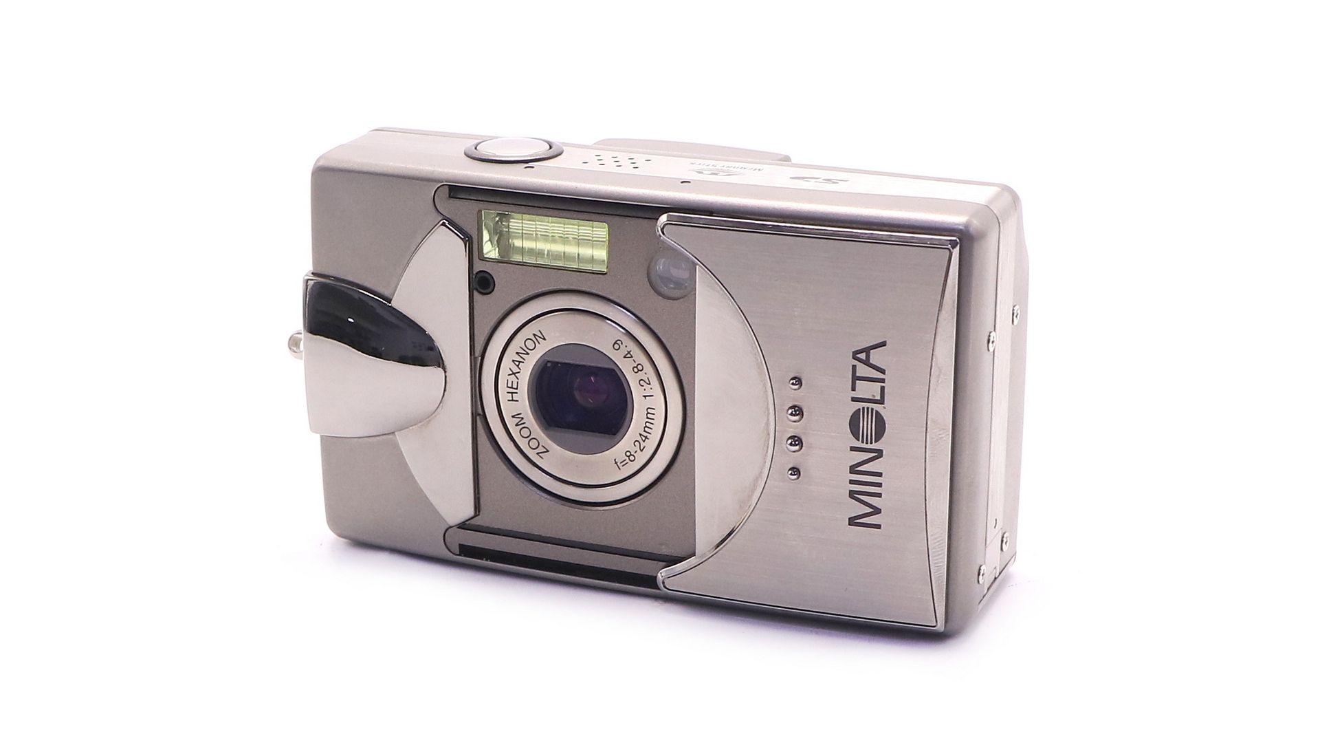 Качественный металлический компакт от Minolta с 5-мегапиксельной матрицей и 3-кратным оптическим зумом. Стильный дизайн и хорошая эргономика для повседневной съёмки.
