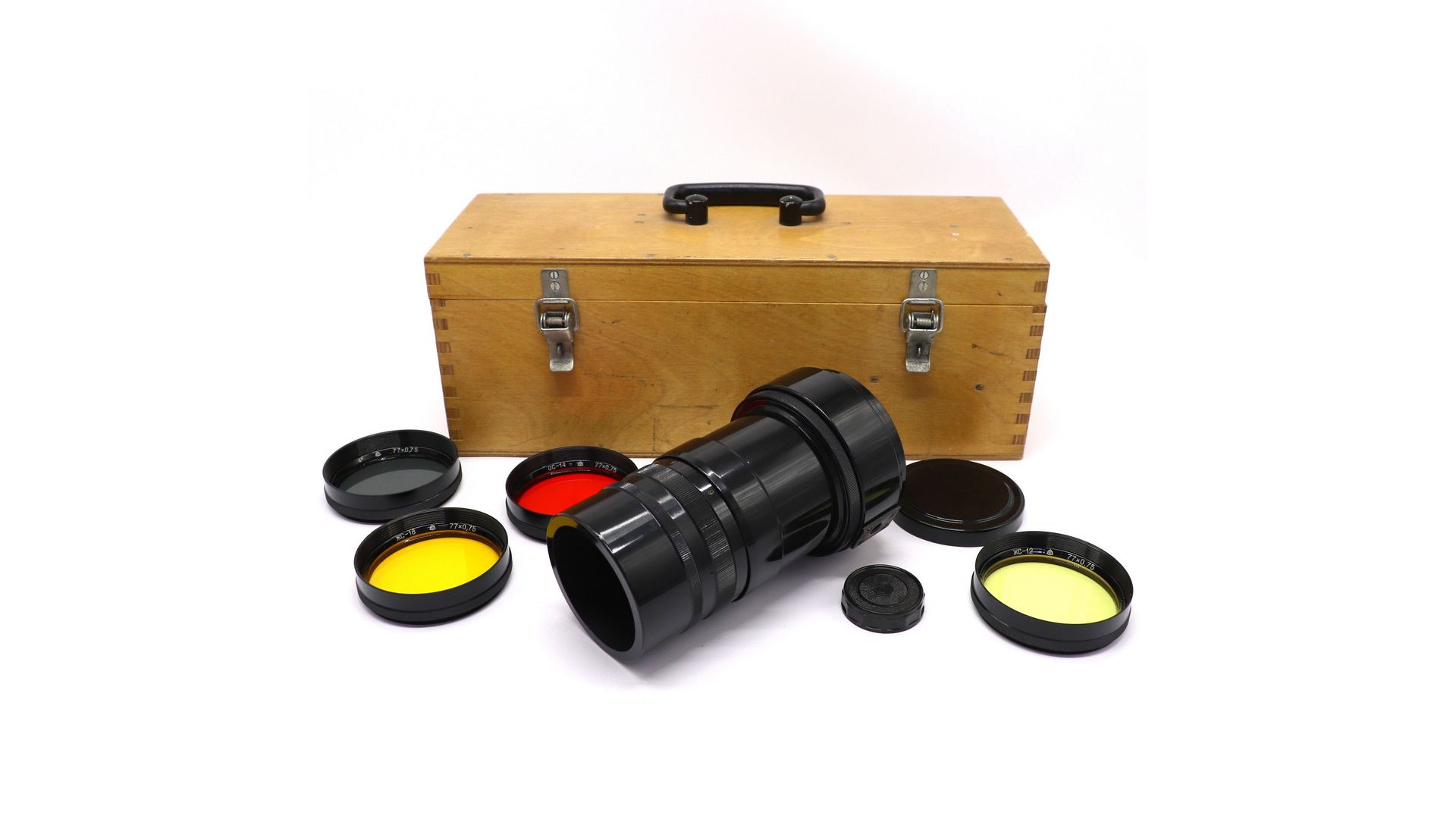 Комплектация:Деревянный бокс, крышка передняя, светофильтры, переходное кольцо на М42, бленда.