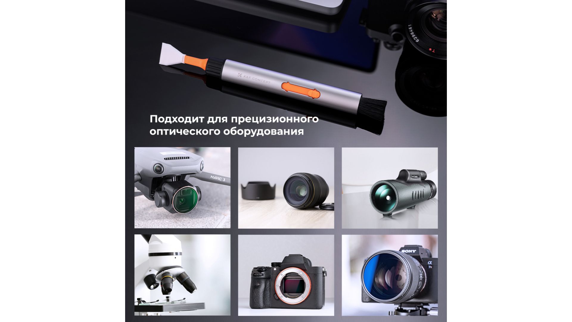 Набор для чистки K&F Concept Versatile Switch 16 мм — универсальный инструмент для бережного ухода за объективами и оптикой. Оснащён сменными насадками с мягкими кисточками, которые эффективно удаляют пыль, отпечатки пальцев и другие загрязнения, не повреждая поверхность линз. Компактный и удобный в использовании, идеально подходит как для повседневной чистки фототехники, так и в поездках. Насадки легко меняются, обеспечивая точную и аккуратную очистку в труднодоступных местах. Надёжный аксессуар для поддержания чистоты и безупречного качества снимков.