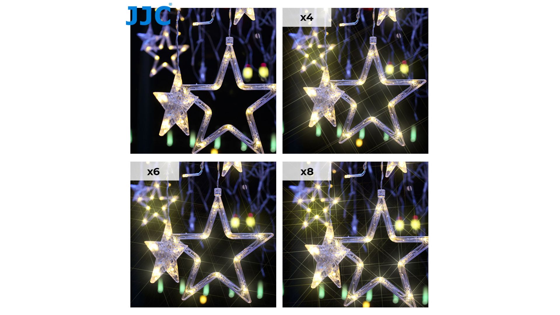 Набор звездных фильтров JJC серии F-STARK включает в себя 3 звездных фильтра (4x, 6x, 8x), которые изготовлены из высококачественного оптического стекла и имеют на поверхности рисунок в виде мелкой сетки. В зависимости от рисунка, точечные источники света и объекты с сильными отражениями создают многолучевые звезды.