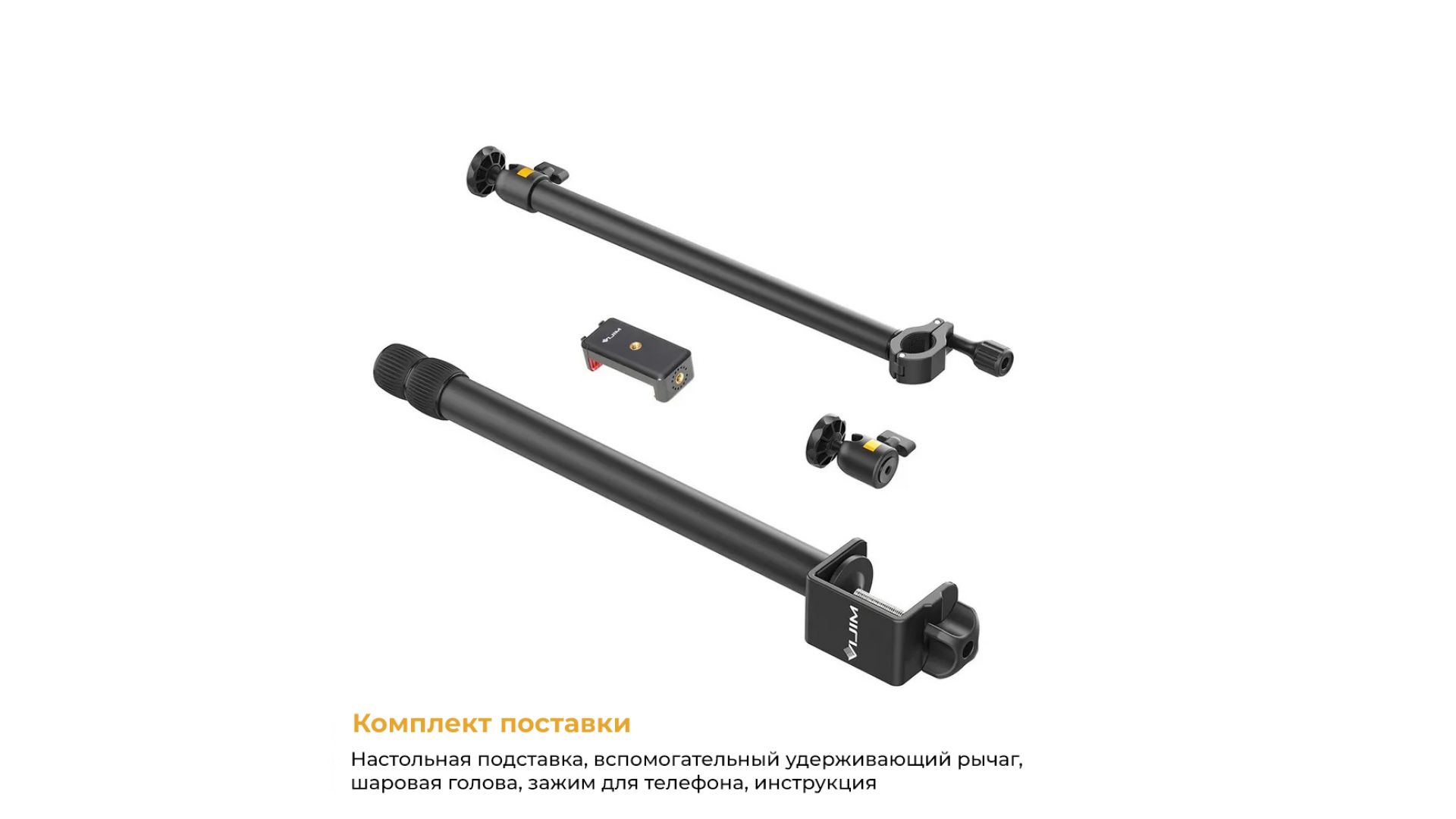 Регулируемая настольная подставка размером 44–105 см обеспечивает достаточную высоту для съемки сверху и освещения. Оснащена горизонтальной штангой (35см) для фотоаппаратов, освещения, телефонов и многого другого.