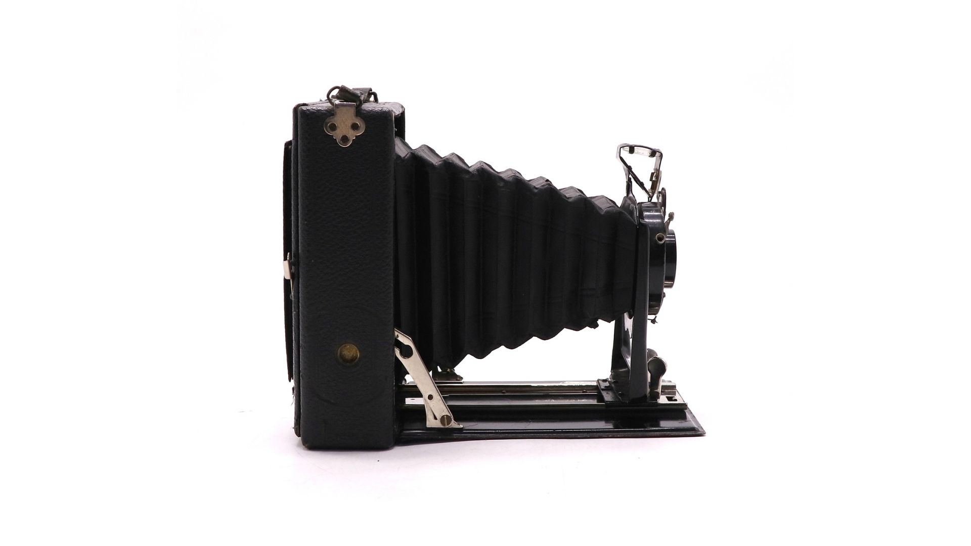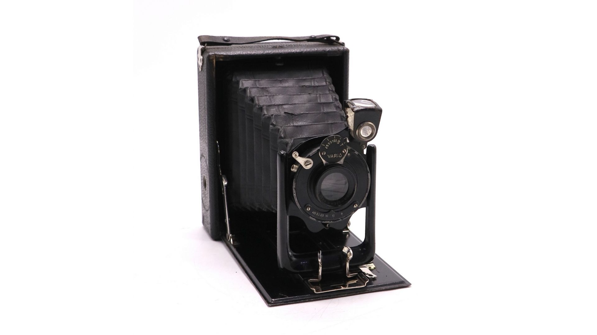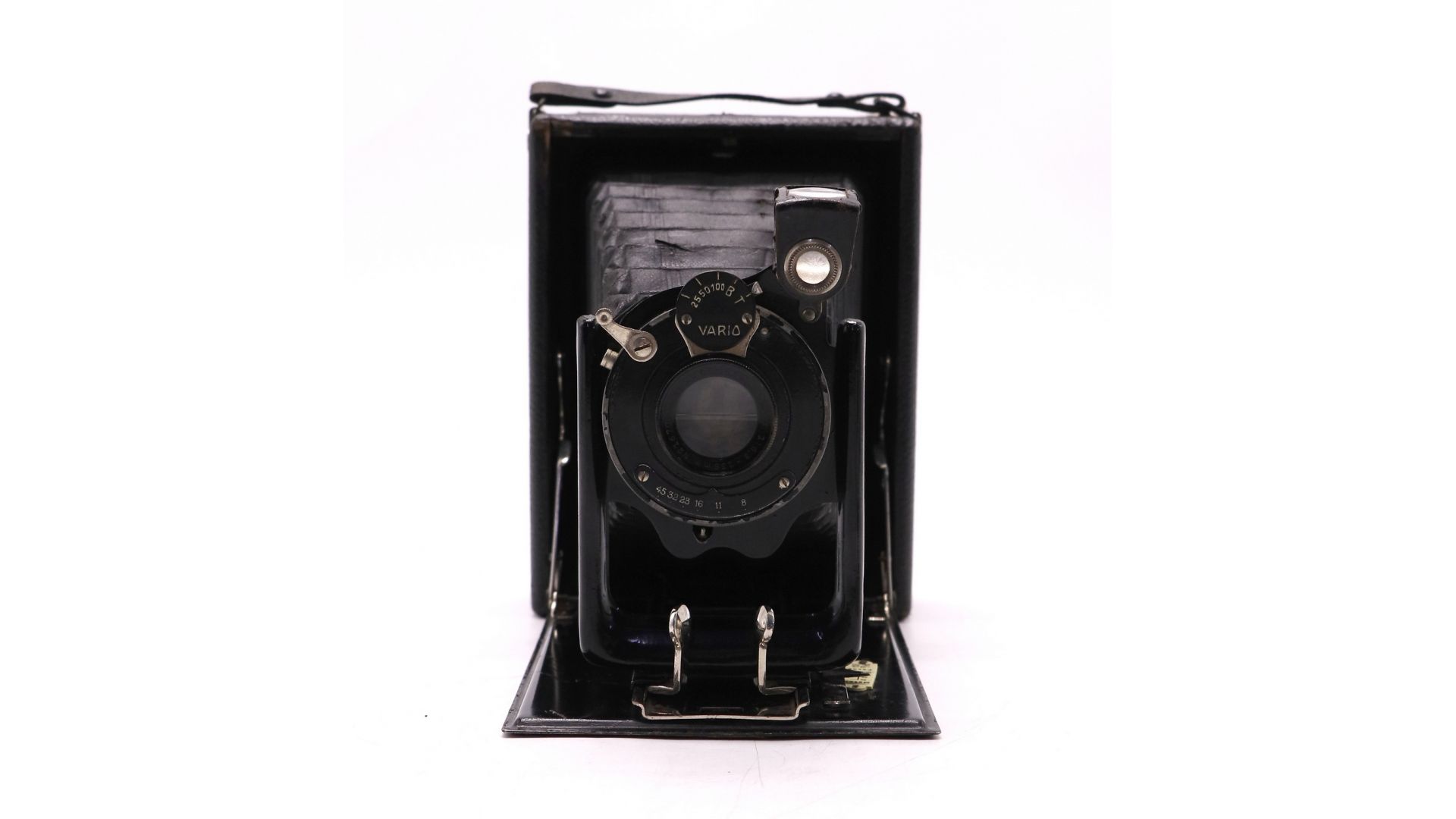 Немецкая «гармошка» с объективом Kenngott-Anastigmat 135mm f/6.3 — это редкий и элегантный представитель складных камер (Klappkamera) немецкого производства. Корпус выполнен по классической схеме двойного растяжения мехов (Doppelzug), что позволяет складывать камеру в компактный прямоугольный бокс для переноски, а при съемке — выдвигать объективную доску по металлическим направляющим.