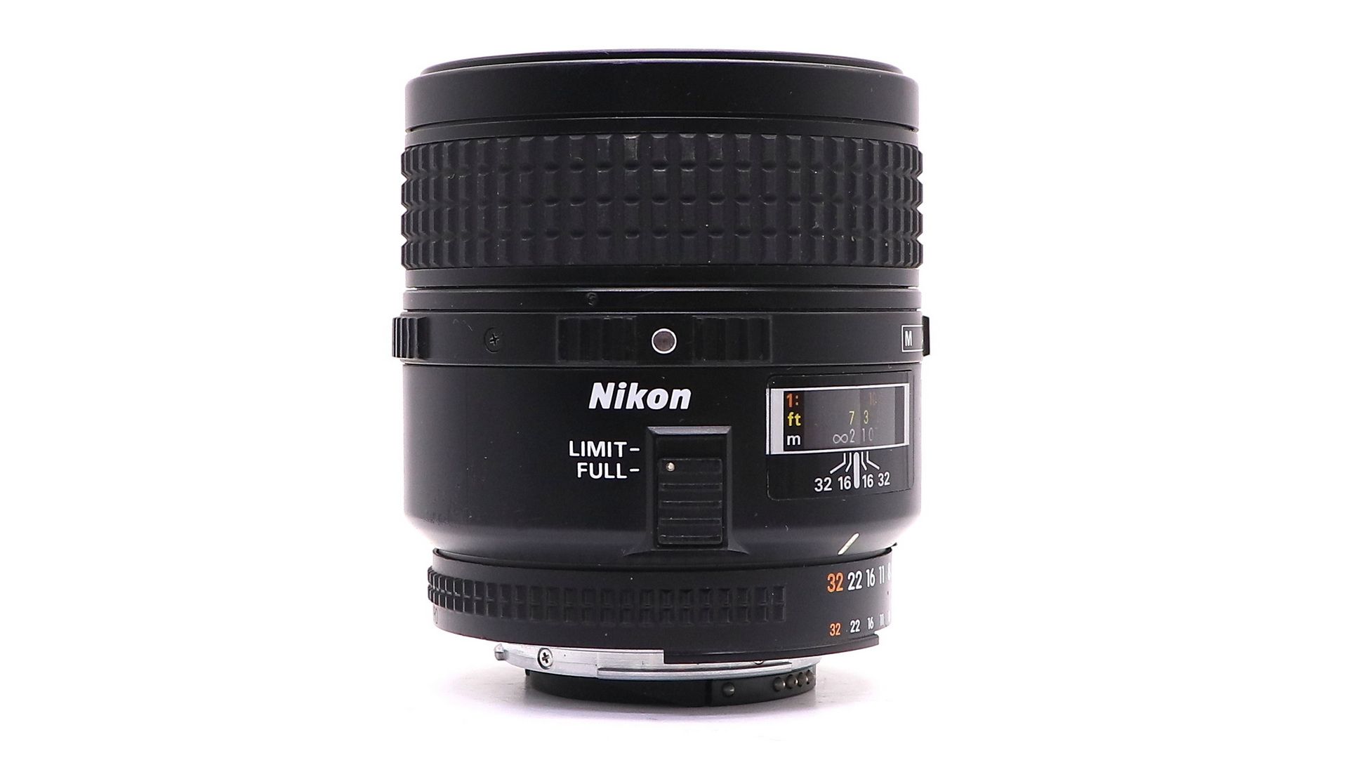 Как и полагается макрообъективу, кроме шкалы дистанции фокусировки и ГРИП (для F/16 и F/32) имеется дополнительное поле, указывающее кратность увеличения в диапазоне от 1:10 до 1:1. У объектива существует специальный ограничитель фокусировки, который может находиться в двух положениях: ‘Limit‘ и ‘Full’. В положении Limit фокусировка доступна от бесконечности до 30 см. При этом можно получить увеличение до 1:3. Можно ограничить работу не только от бесконечности до 30 см, но и от 27 см до МДФ. Кольцо фокусировки прорезинено и вращается на 135 градусов в положении Full. Для фокусировки объектив использует систему Nikon CRC — Close Range Correction — коррекция изображения при малых дистанциях фокусировки. Объектив резкий, с хорошей детализацией и с хорошим контрастом да и без боязни контрового света. Предназначен для макросъемки.