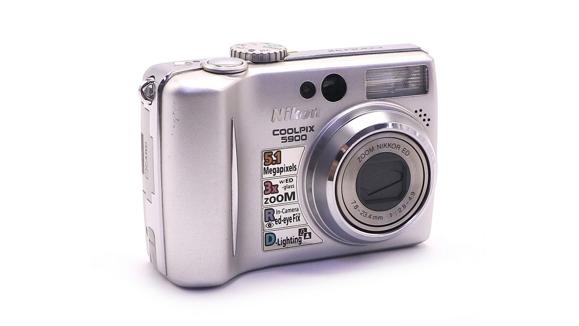 Разрешение 5.1 миллиона эффективных пикселей обеспечивает высокое качество и деталировку напечатанных фотографий даже после кадрирования снимка или при увеличении отпечатка до размера А4. Компактный и стильный металлический корпус с большим, ярким и четким 2-дюймовым ЖКИ TFT монитором. Универсальный 3-кратный объектив Zoom-Nikkor, в котором использовано профессиональное оптическое стекло Nikon ED (со сверхнизкой дисперсией) обеспечивает получение великолепных изображений с тонкой деталировкой. Новейшая функция "D-Lighting", реализованная прямо в фотокамере, обеспечивает возможность спасения недоэкспонированных снимков нажатием всего одной кнопки и без применения компьютера.