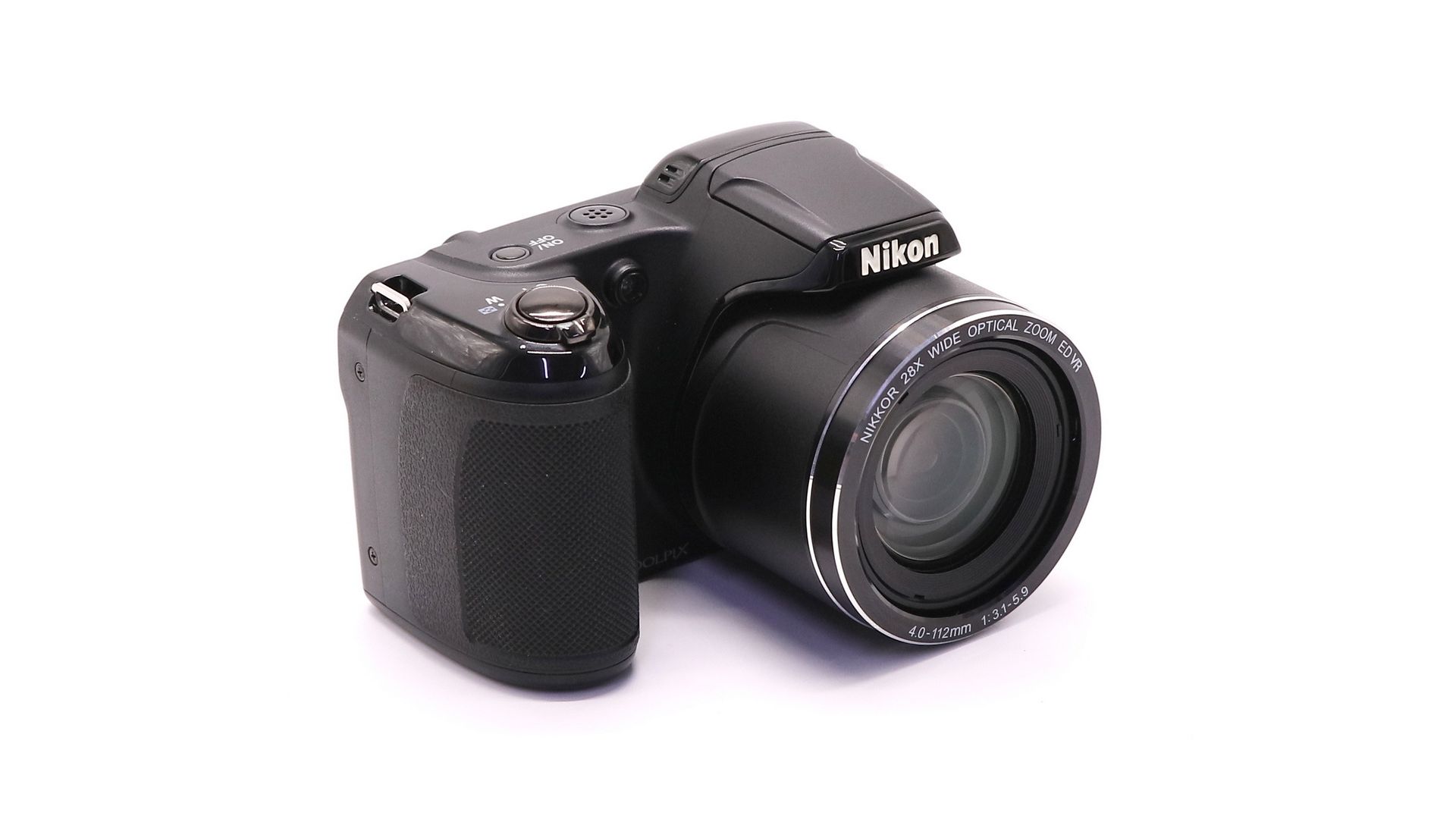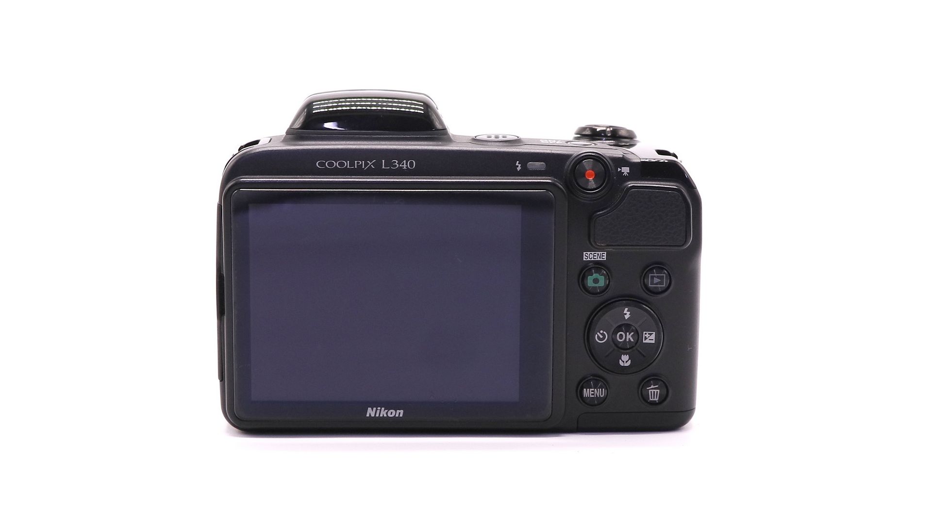 Простая и недорогая камера, рассчитанная на тех, кому нужен «дальнобойный» и в то же время несложный в использовании аппарат. Оснащена объективом с оптическим увеличением 28х (плюс цифровое 4х и 56х в расширенном режиме Dynamic Fine Zoom) и встроенным стабилизатором. Съёмка осуществляется на 20-Мп матрицу классического формата 1/2.3". Дисплей фотоаппарата Nikon Coolpix L340 — с крупной 3" диагональю, антибликовым покрытием и 5 уровнями яркости; правда, разрешение — всего 460 тыс. пикс. Камера поддерживает карты microSD и использует 4 стандартные батарейки АА.
