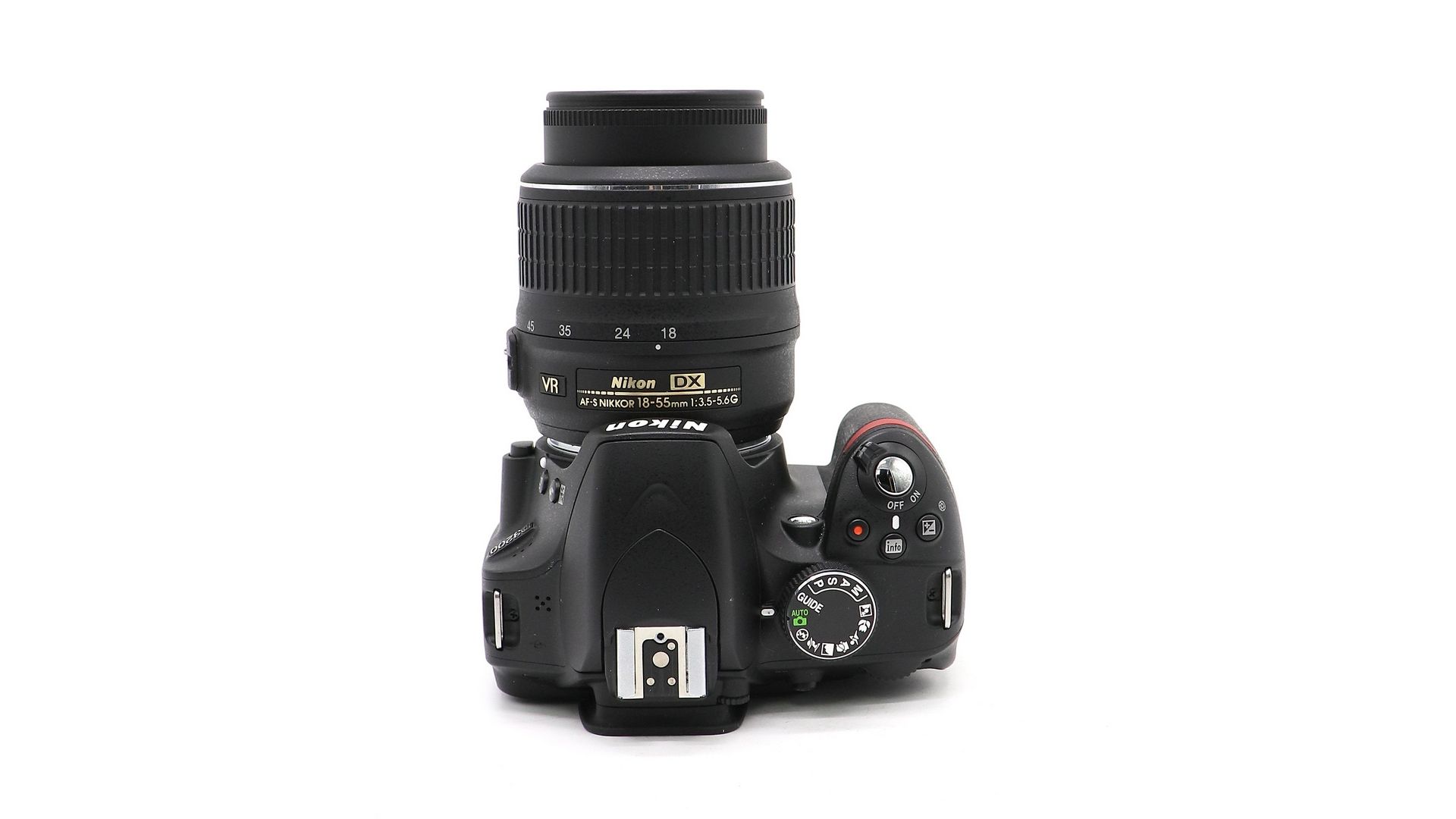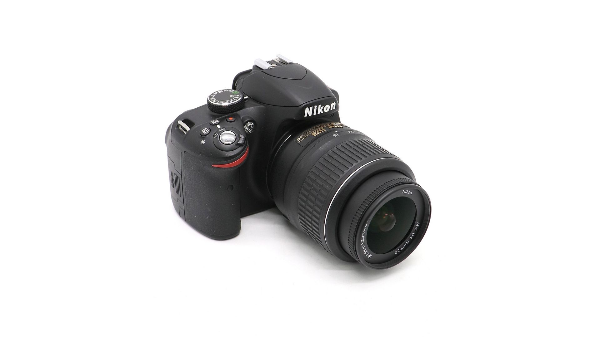 Комплектация:Объектив Nikon 18-55mm f/3.5-5.6G AF-S ED DX, аккумулятор, ремень, крышка объектива, зарядное устройство.