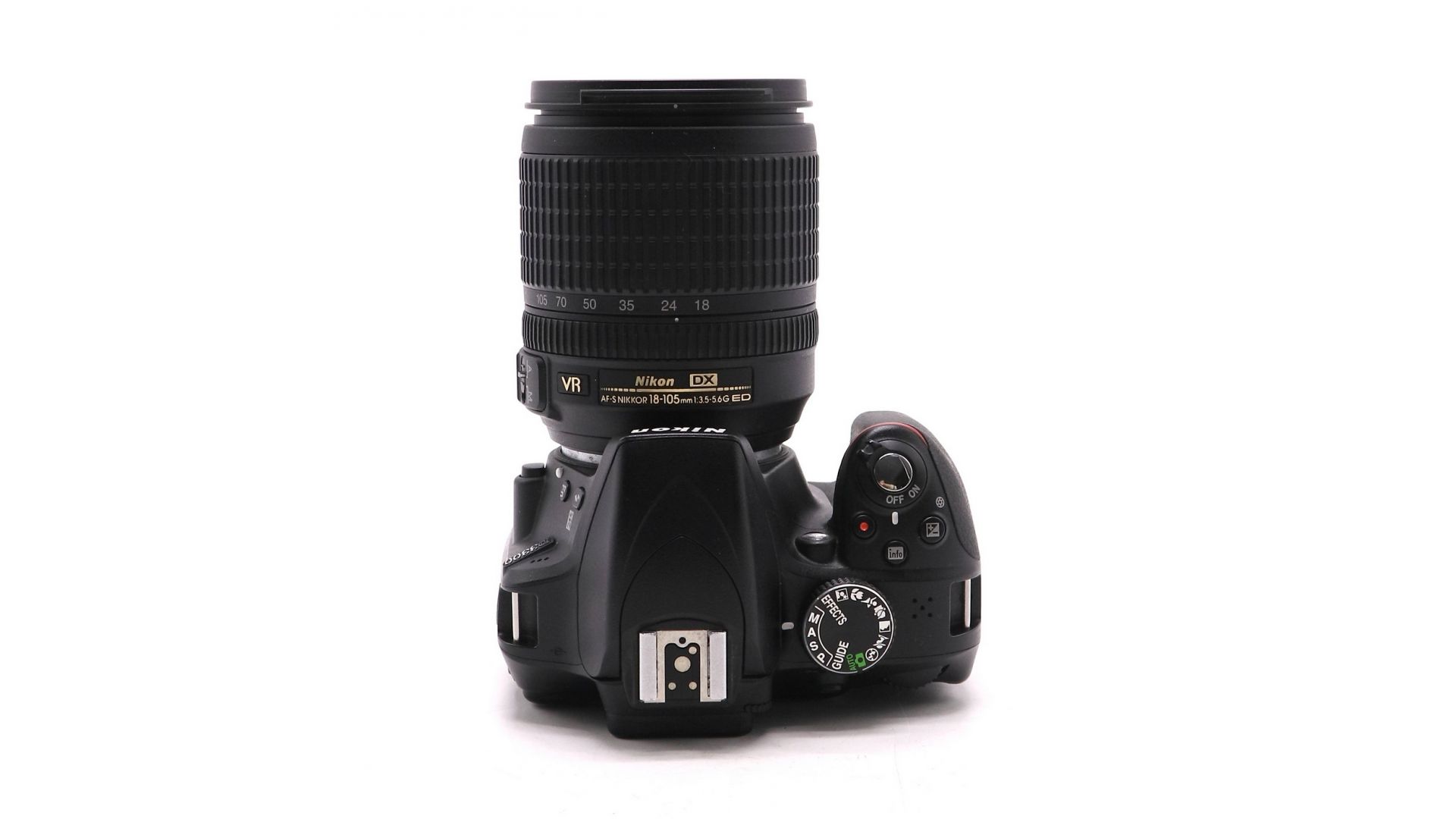 Комплектация:Аккумулятор, зарядное устройство, ремень, объектив Nikon 18-105mm f/3.5-5.6G AF-S ED DX VR Nikkor, крышка объектива, бленда.