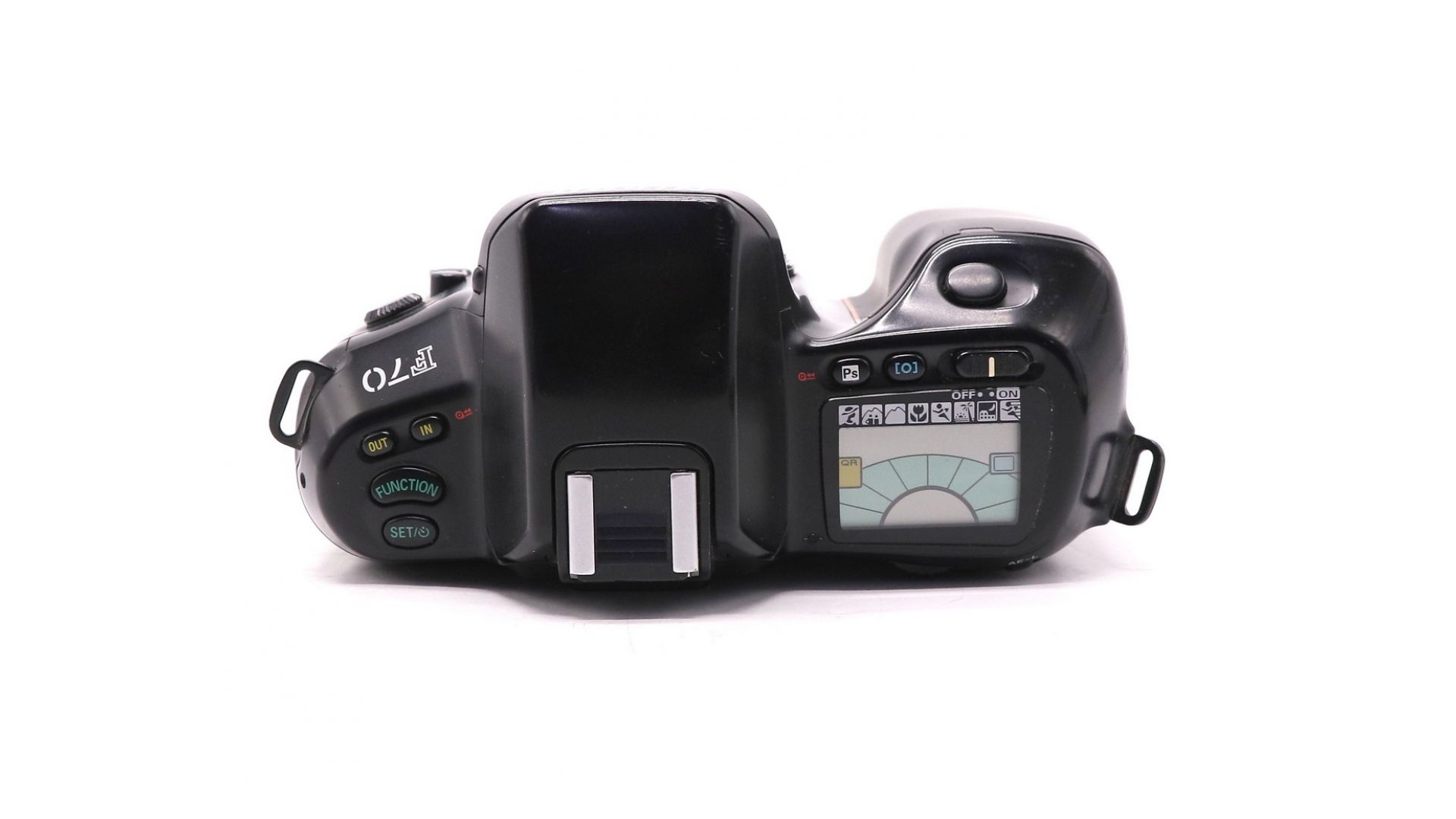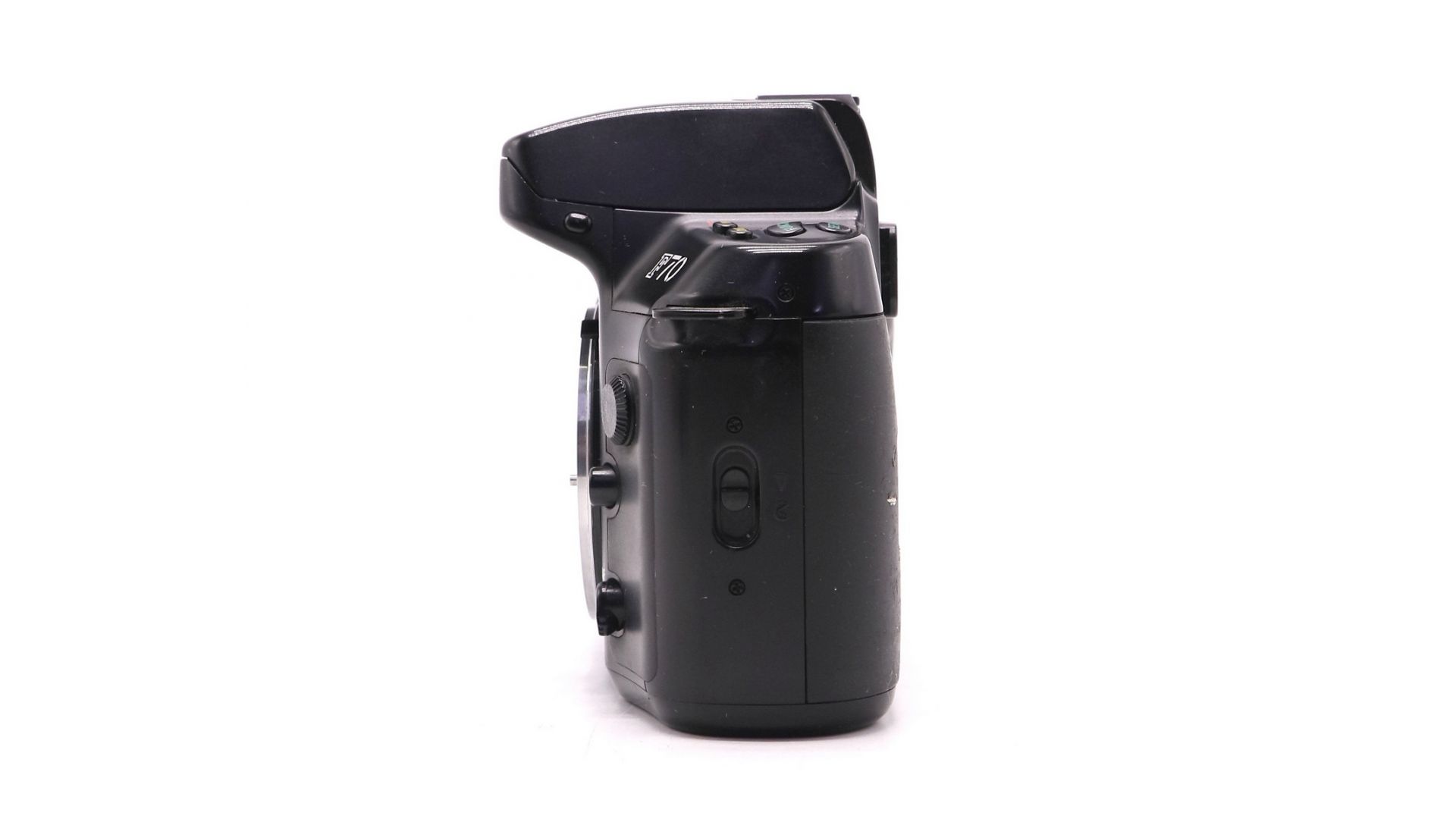 Фотоаппарат имеет добротный конструктив, основные части камеры металлические, за исключением задней, верхней и нижней крышек. Кроме верхней и нижней крышек, корпус камеры обрезинен. Видоискатель отображает 92% площади кадра, увеличение 0.75Х. Ручная фокусировка на F70 вполне комфортна, для контроля наводки на резкость имеется электронный дальномер, который работает с объективами, светосила которых не ниже f/5.6. Индикатор фокусировки в видоискателе находится в служебной строке под кадром. F70 имеет одну зону фокусировки, датчик АФ - крестовой, имеется возможность переключения режимов АФ: точечный, широкая зона.