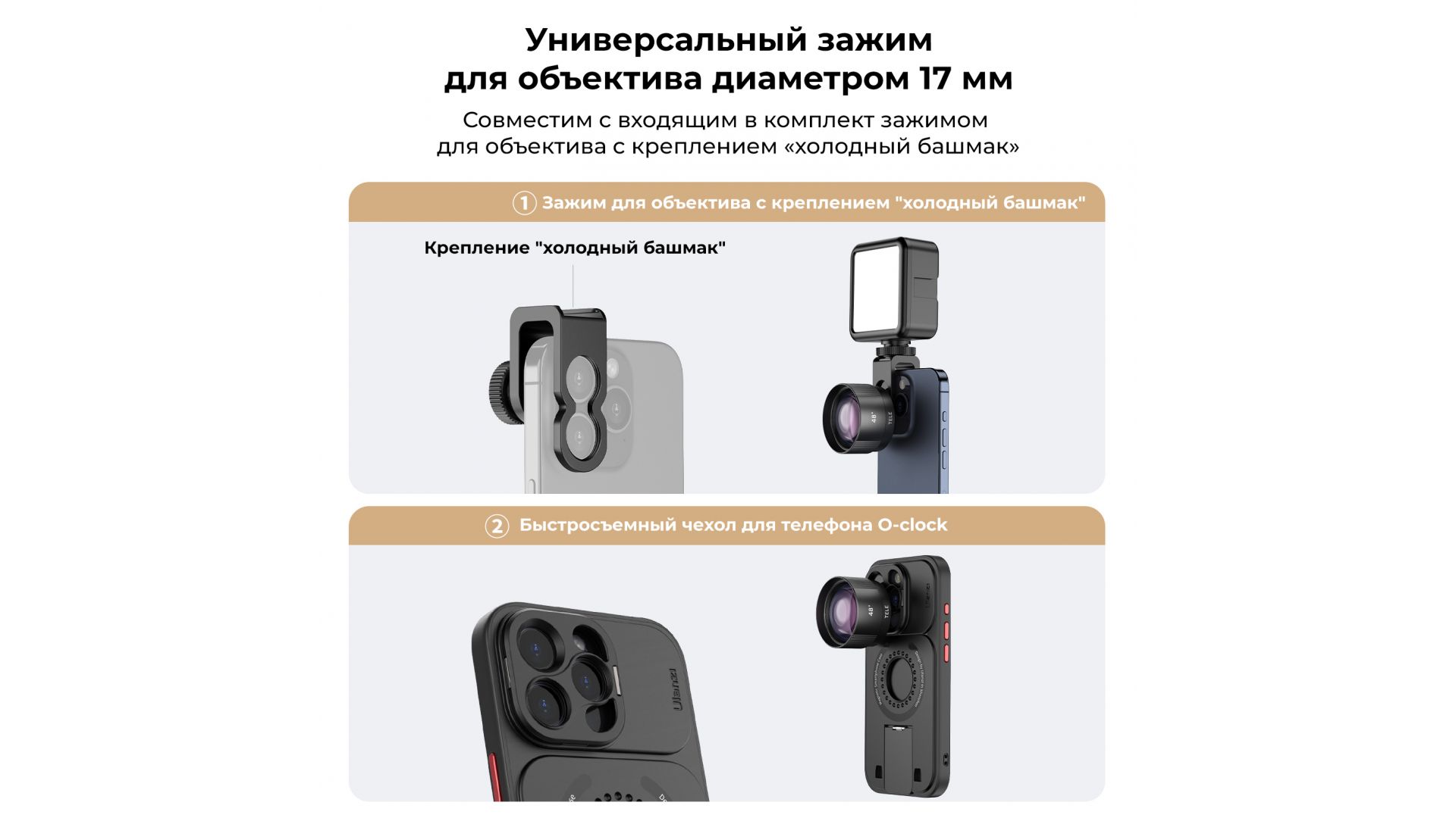 Телеобъектив Ulanzi CL-006 60 мм позволяет увеличивать удаленные объекты в 2,5 раза, обеспечивая при этом исключительную четкость изображения. Изготовленный из высококачественного оптического стекла, он обеспечивает реалистичные цвета и яркие изображения, а конструкция из алюминиевого сплава и противоскользящая текстура обеспечивают долговечность и простоту использования. Универсальный зажим для объектива диаметром 17 мм совместим с входящим в комплект зажимом для объектива, чехлами для телефонов с резьбой диаметром 17 мм и клетками для фотоаппаратов, что обеспечивает быстрое и надежное крепление.