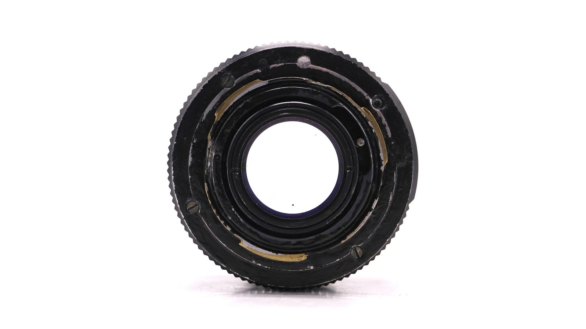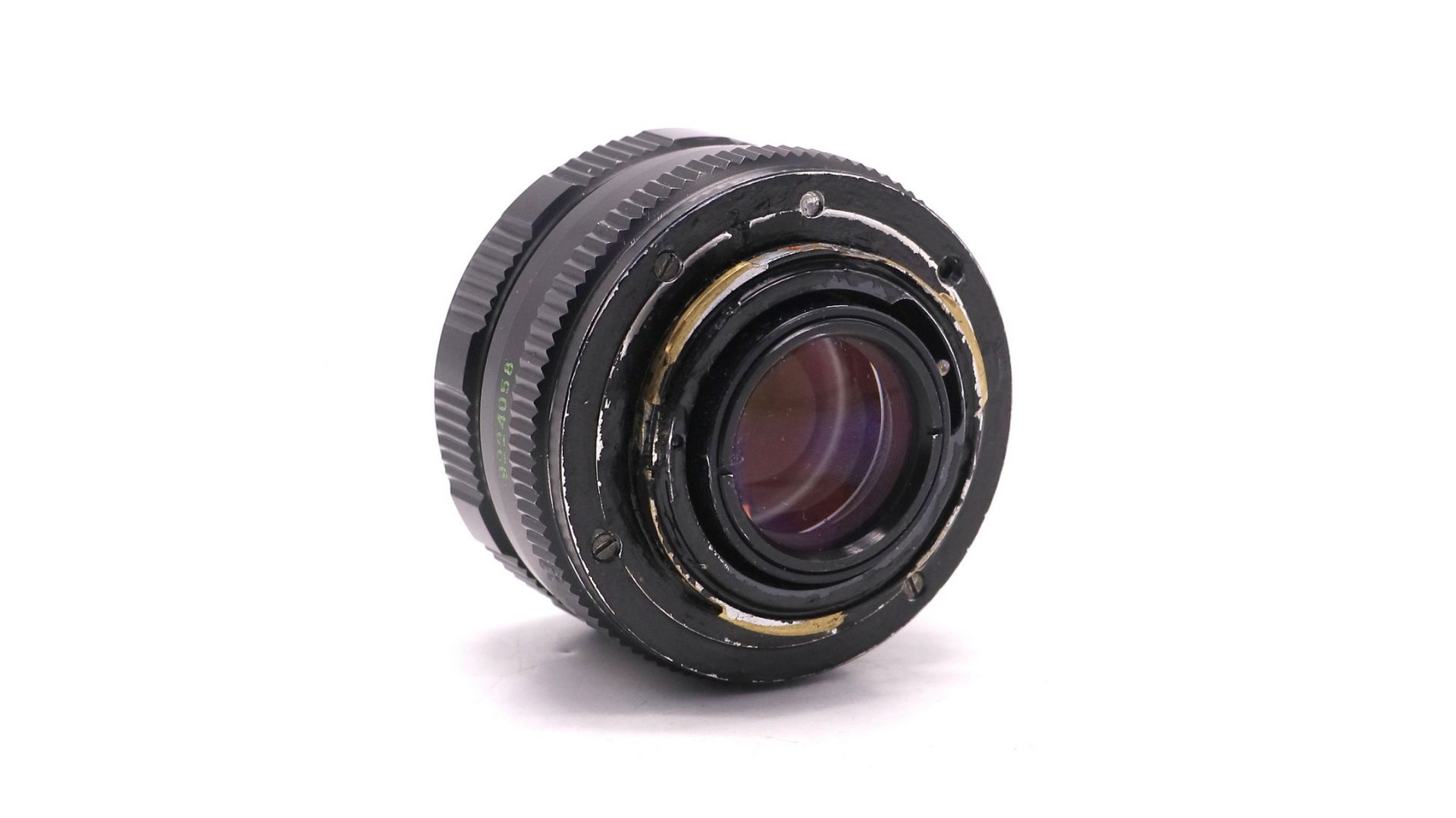 Присутствуют значительные дефекты - внешние или технические, влияющие на работоспособность. Диафрагма работает некорректно. Байонет объектива переделан на Pentax K. Отсутствует один из болтов на байонете.