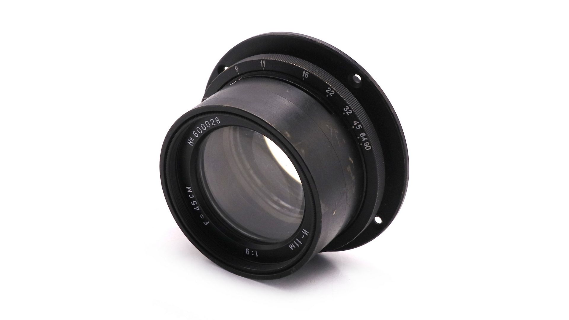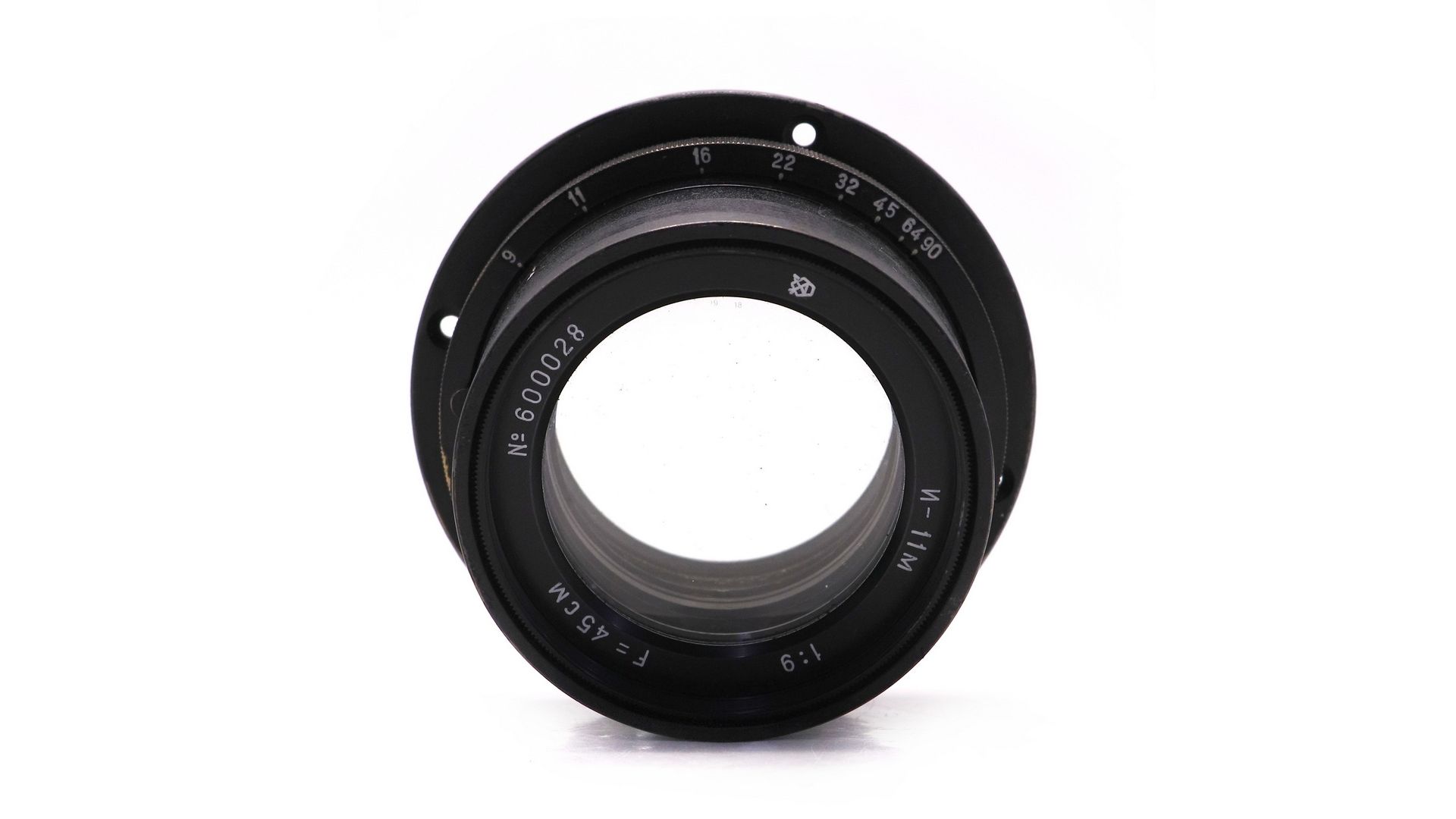 Объектив «Индустар‑11М» (И‑11М 9/45 см) — классический советский телеобъектив с фокусным расстоянием 450 мм и относительным отверстием f/9. Отличается качественной коррекцией хроматических и сферических аберраций, обеспечивая чёткое изображение. 18‑лепестковая диафрагма формирует плавное, эстетичное боке. Разрешающая способность — 35 лин/мм в центре и 14 лин/мм по краю кадра. Поддерживает форматы от 9×12 до 30×40 см, что делает его универсальным для студийной съёмки. Особенно хорошо проявляет себя в макросъёмке. Отличный выбор для коллекционеров и фотографов, работающих с крупноформатной техникой и ценящих характер винтажной оптики.