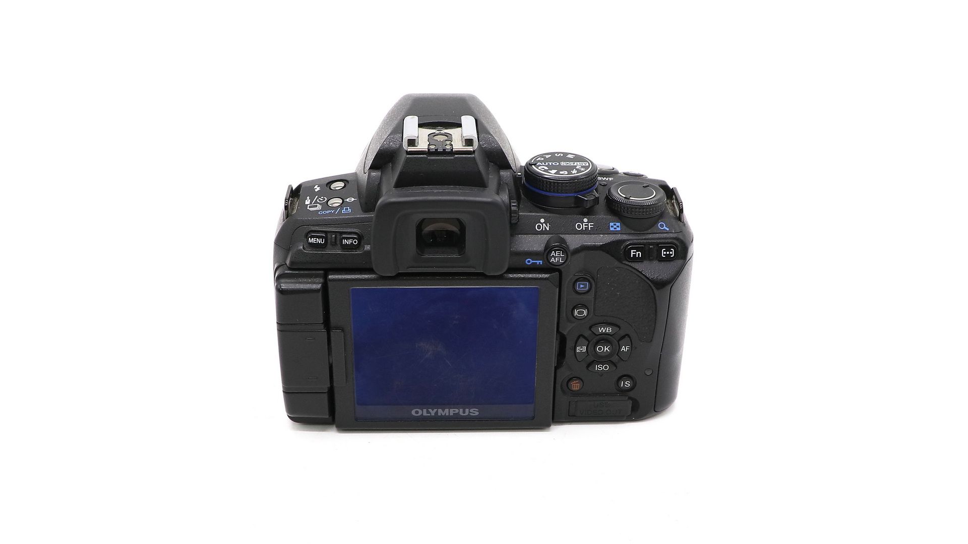 Матрица Live MOS, с эффективным разрешением 12,3 Мп, 2-битный процессинг изображений. Диапазон чувствительности: ISO 100 - 3200. Cерийная съемка с частотой 4 кадров/c (до 5 кадров за одну серию). Оптический видоискатель с 98% покрытием кадра. Механическая стабилизация изображения. Система очистки матрицы от пыли (Supersonic Wave Filter). Режим Live View. Акселерометр (датчик ориентации). Два слота для карт памяти: CF и xD-Picture. 7 точек автофокусировки (5 перекрестных датчиков). Экран: 2.7" HyperCrystal III TFT LCD-дисплей, 230 000 пикселей, поворотная конструкция.