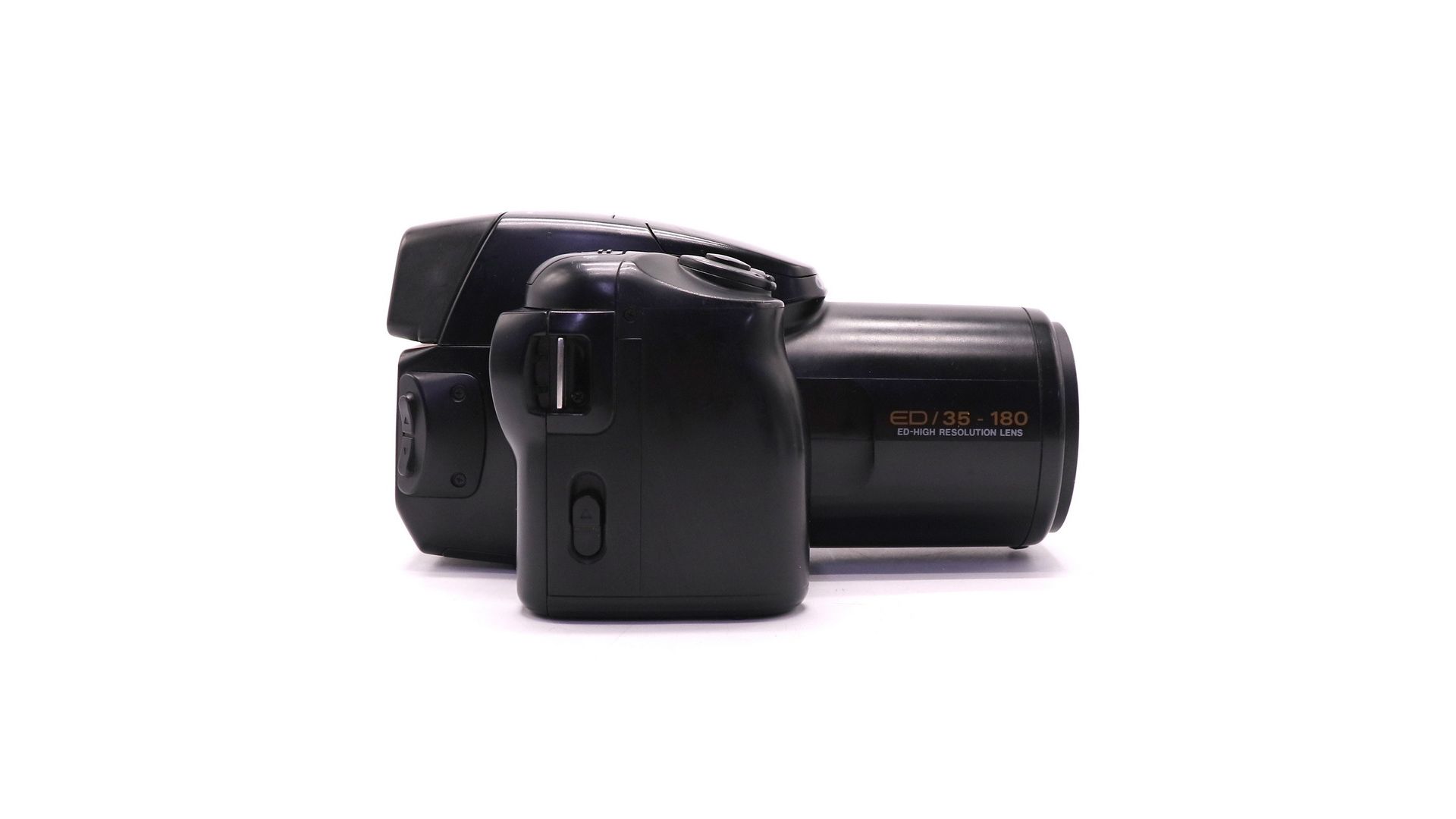 Камера имеет все профессиональные и любительские программы подобно любому аппарату "начального" уровня у всех фирм. Главное отличие от сравнимых по классу камер - встроенный объектив с весьма впечатляющим диапазоном изменения фокусного расстояния 35-180мм, что в большинстве случаев позволяет подобрать фокусное расстояние для любого жанра. Камера имеет мощную двухэлементную вспышку (ведущее число 28) необычно высоко поднятую для встроенной. Специально изготовленный для камеры объектив, содержащий низкодисперсионные элементы для устранения аберраций, позволяет добиться хорошего качества во всем диапазоне фокусных расстояний объектива.