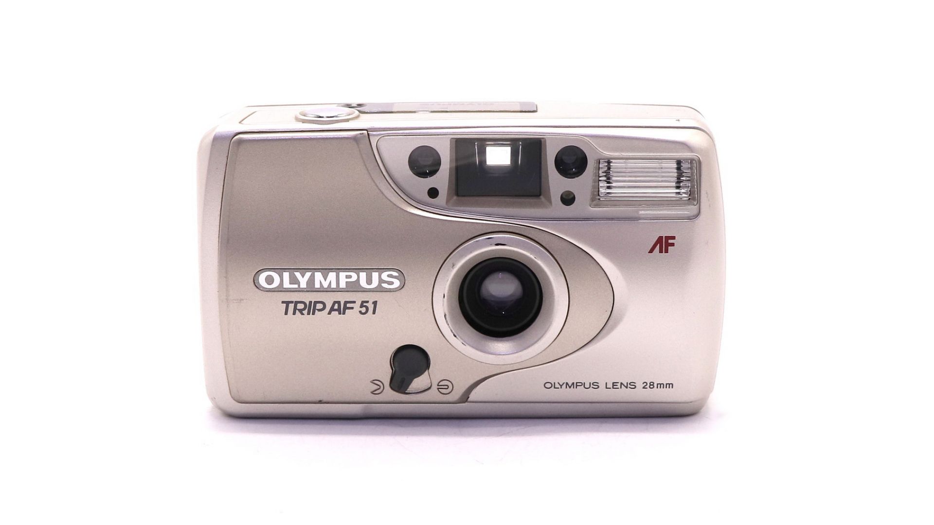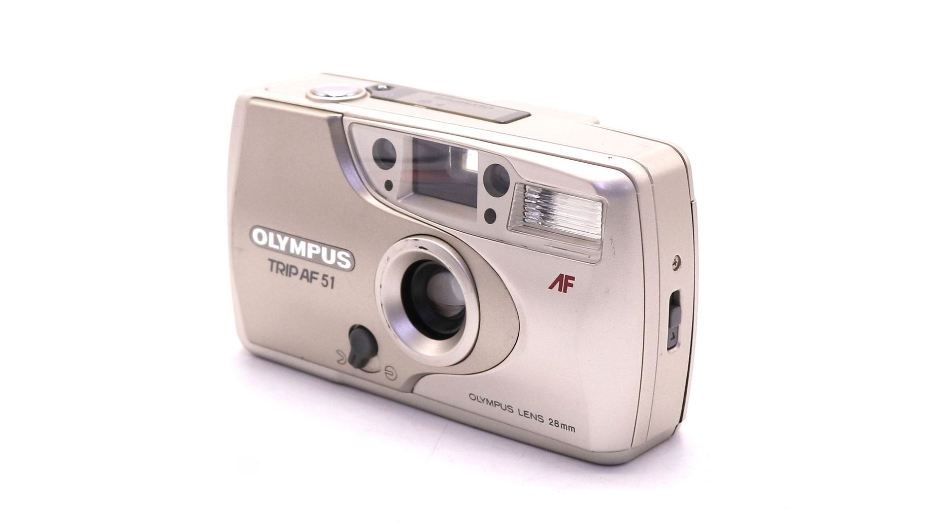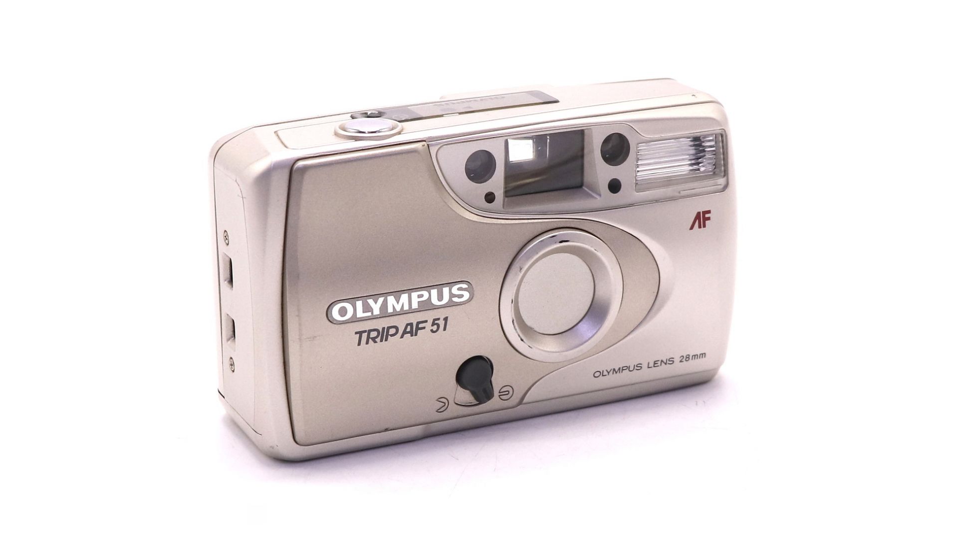 Olympus Trip AF 51 – компактный плёночный фотоаппарат с автофокусом, сочетающий простоту использования и классический дизайн. Объектив 28 мм (f/5.6) с 3-элементной оптикой обеспечивает четкие снимки с естественной перспективой, идеальные для повседневной съемки.