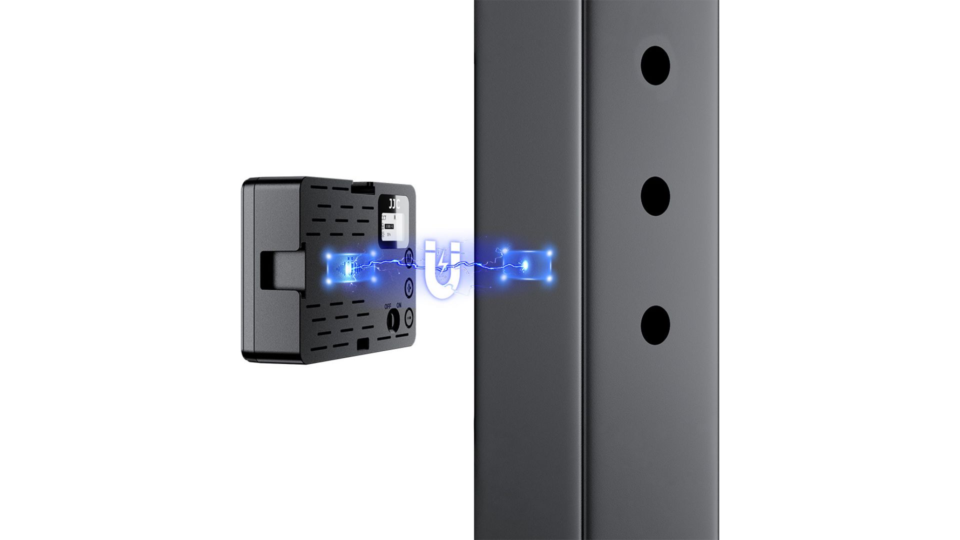Этот RGB видеосвет имеет встроенный магнит на задней панели, который поддерживает прямую адсорбцию и фиксацию на плоской поверхности ферромагнитного материала. Он поставляется с магнитным кольцом с клеем на обратной стороне, которое подходит для наклеивания на гладкие поверхности из стекла и керамической плитки.