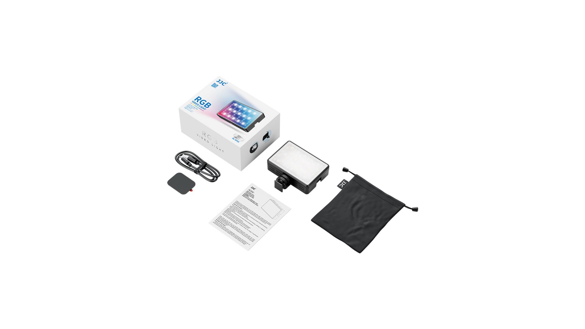Комплектация:RGB-осветитель, сумка для хранения, переходник с винта 1/4-20 на холодный башмак, магнитная пластина, кабель для зарядки USB Type-C, руководство пользователя