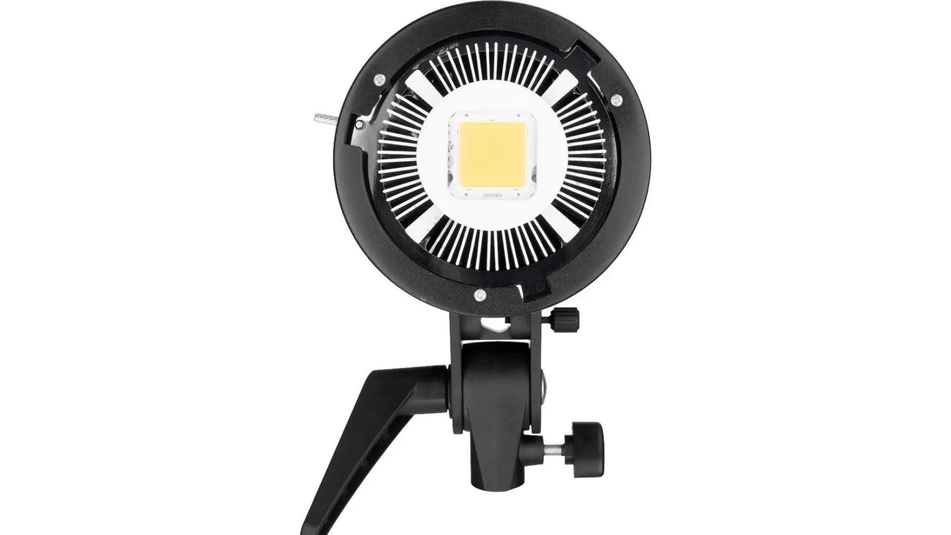 Беспроводное управление через RC-A5 (покупка отдельно): включение, выбор канала/группы, регулировка яркости. Встроенный радиатор с вентилятором контролирует температуру (данные на экране). В кронштейне есть отверстие для фотозонта.