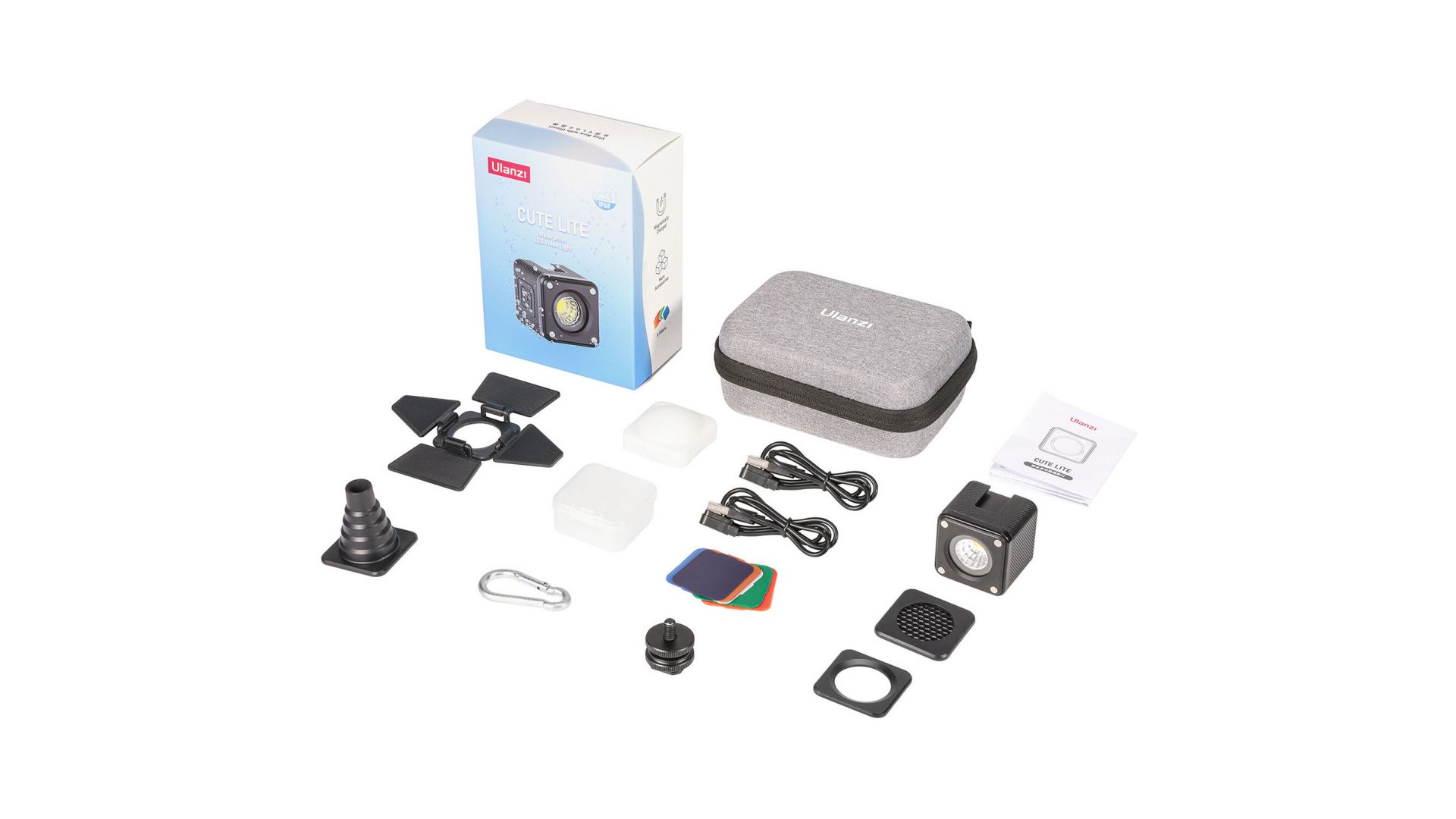 соты, зарядный кабель, комплект фильтров (8цветов), кейс для фильтров, карабин, холодный башмак, магнитный адаптер