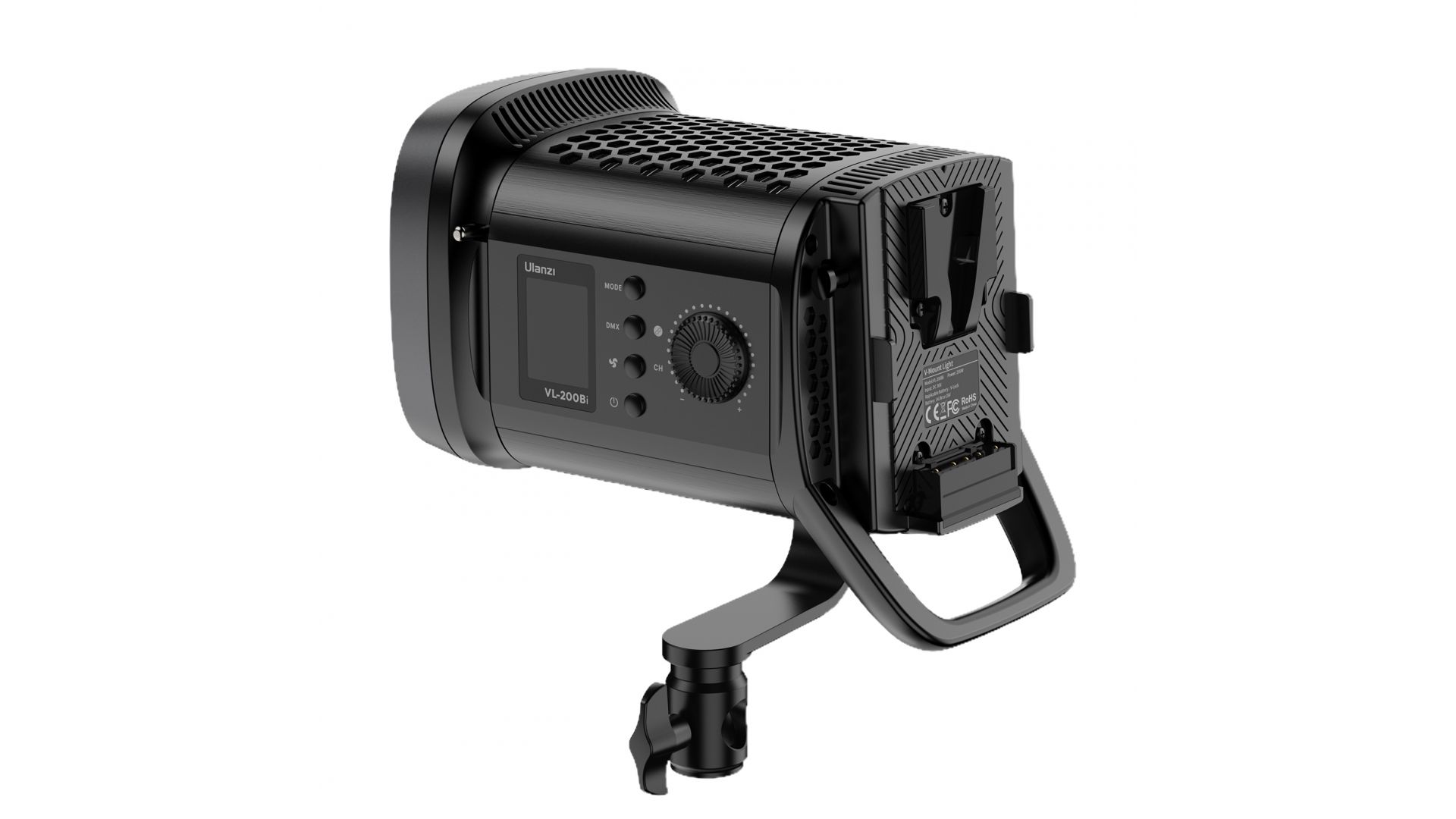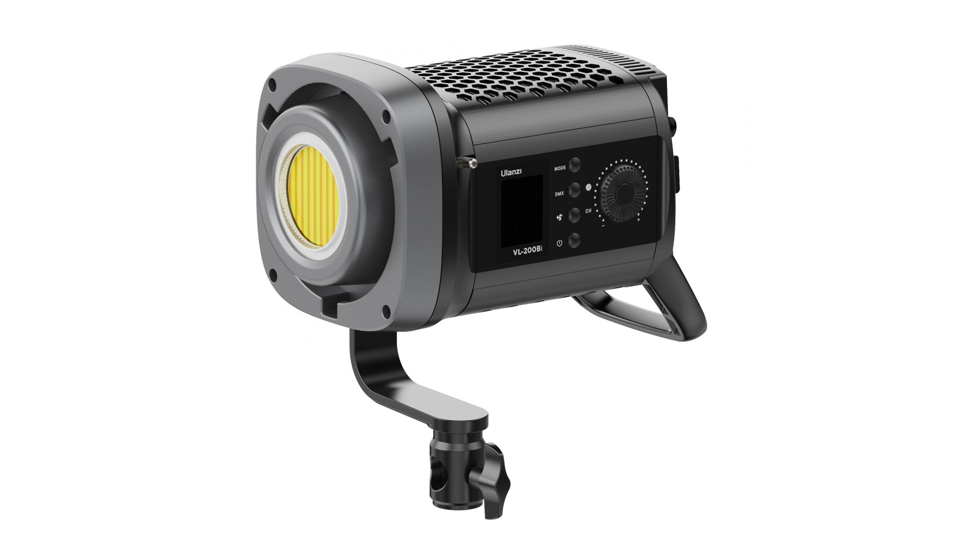 Управляйте освещением на расстоянии до 30 метров с помощью приложения Ulanzi Connect. Удобный дизайн включает в себя ЖК-дисплей, бесступенчатую ручку, L-образную подставку с поворотом на 300°, крепление Bowens и интерфейс DMX для управления несколькими источниками света.