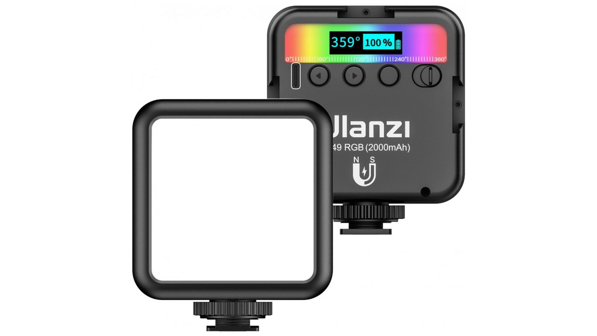 VL49 RGB функционирует от встроенной батареи емкостью 2000 мАч. Представленная модель может работать около 2 часов при максимальной яркости и до 10 часов при минимальной.