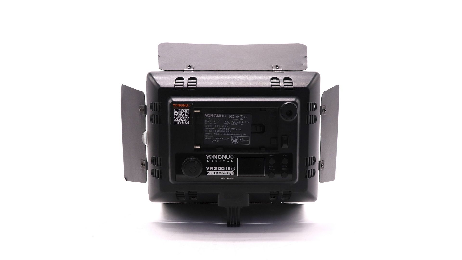 Мощность 18 Вт, 300 светодиодов с цветовой температурой 5600K, индекс цветопередачи CRI 95, угол светового потока 55°. Питание через сетевой адаптер или аккумуляторы NP-F.