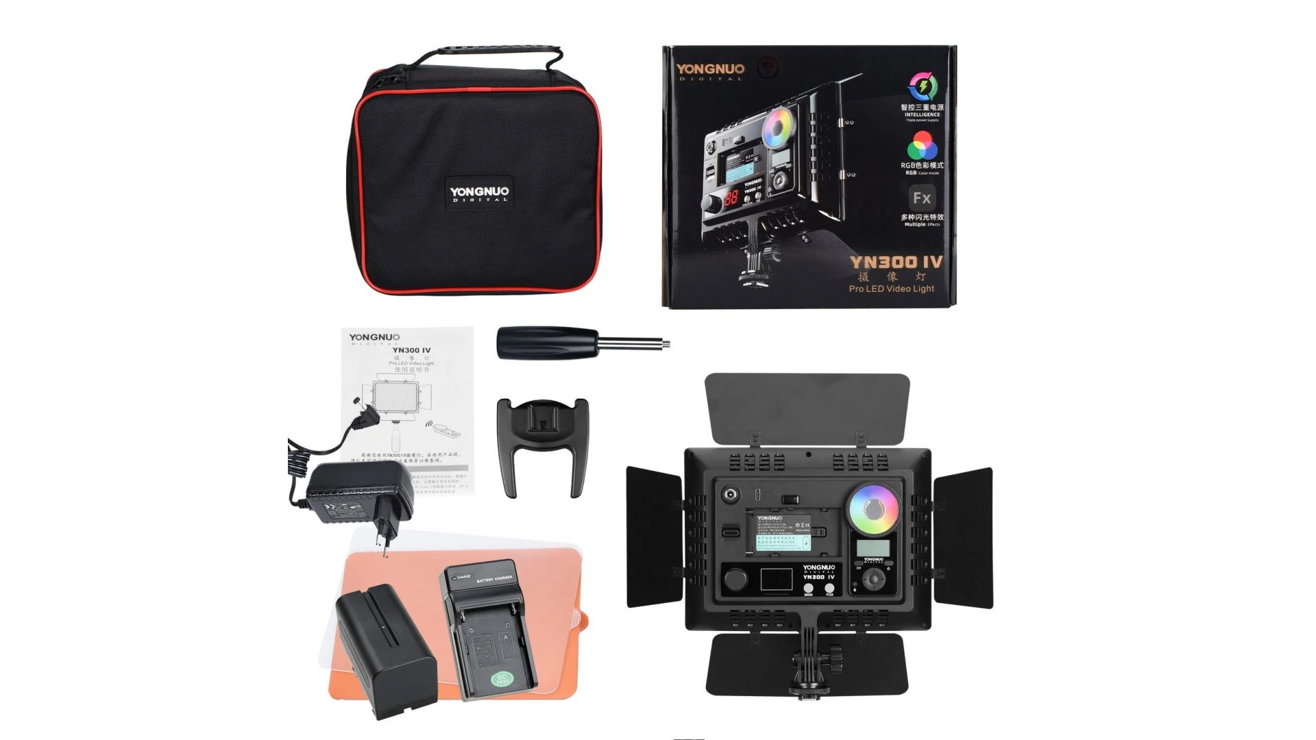 Yongnuo YN300 IV - мощный и производительный полноцветный SMD-осветитель S, оснащен 15 спецэффектами освещения. .