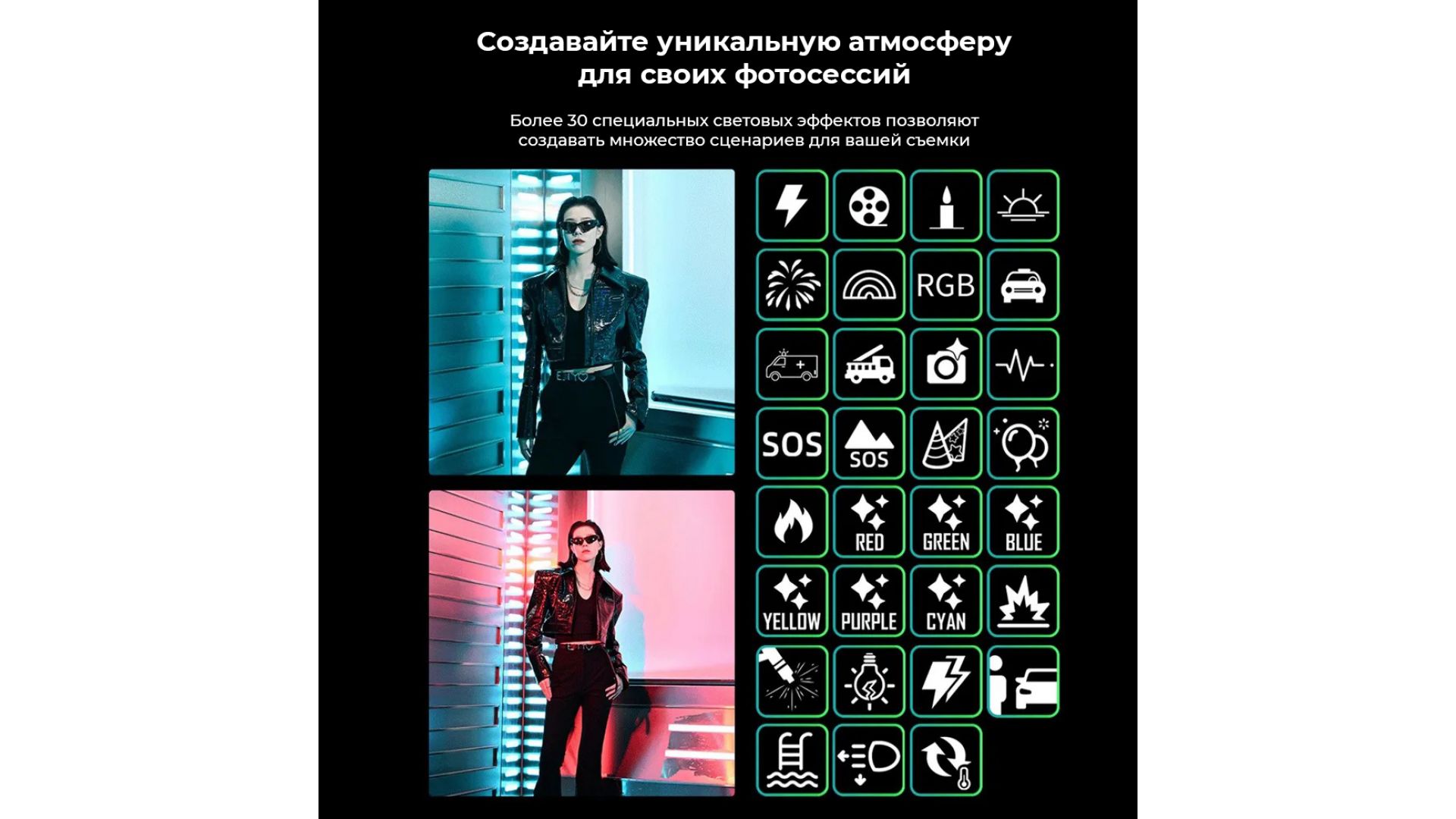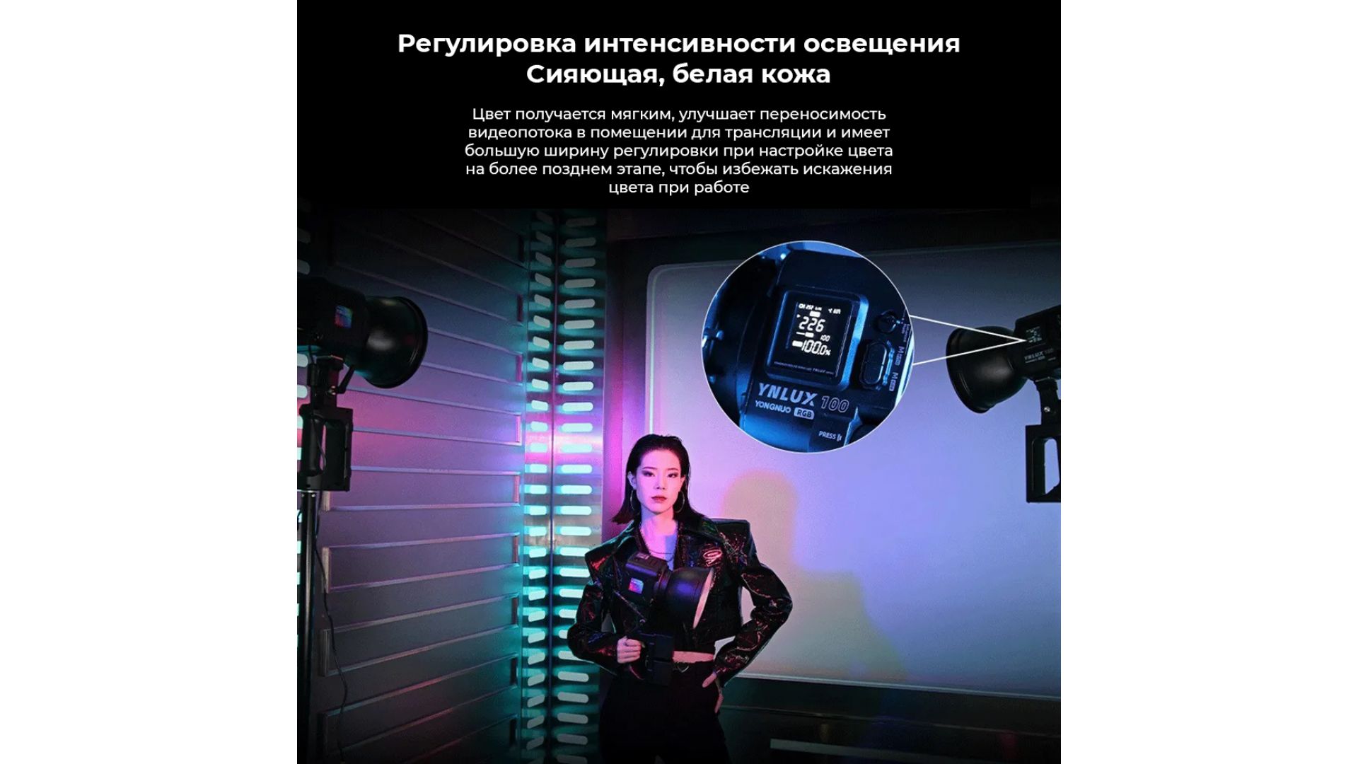 Мощный и компактный студийный свет серии LUX, теперь и с RGB режимом на борту. Огромное количество спецэффектов и возможность управления через приложения делают его отличным выбором даже для небольшой студии или личной комнаты