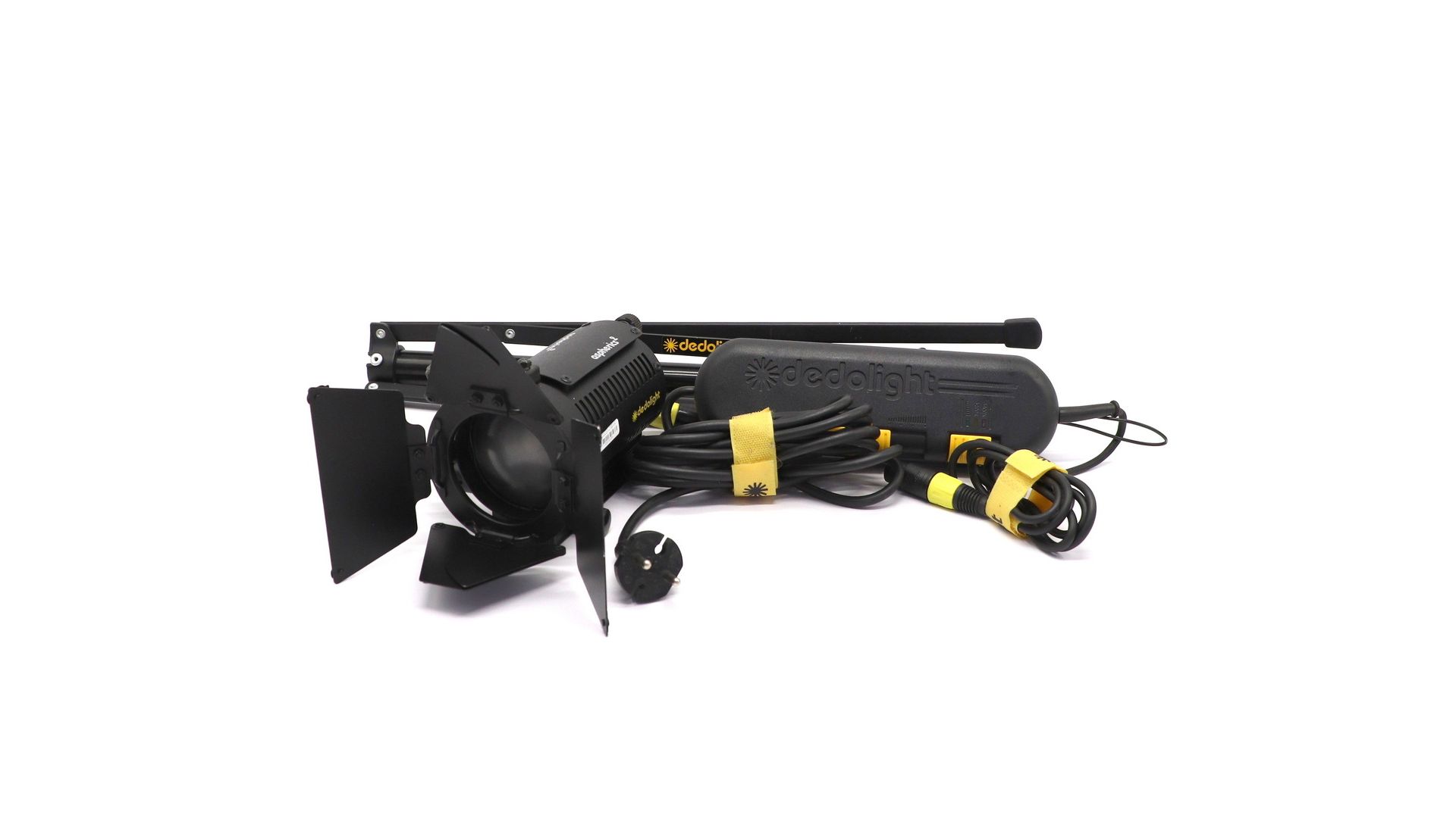 – Отличительные особенности: профессиональный модульный осветитель для кино‑ и фотосъёмки. Отличается точной регулировкой светового потока, высокой цветопередачей и совместимостью с широкой линейкой светоформирующих насадок Dedolight.