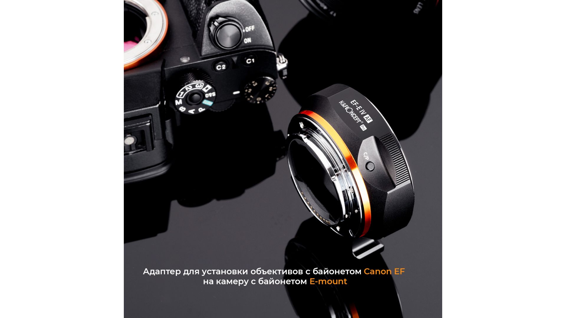 Переходник K&F Concept Canon EOS / EF - Sony E / Sony Nex Автофокус