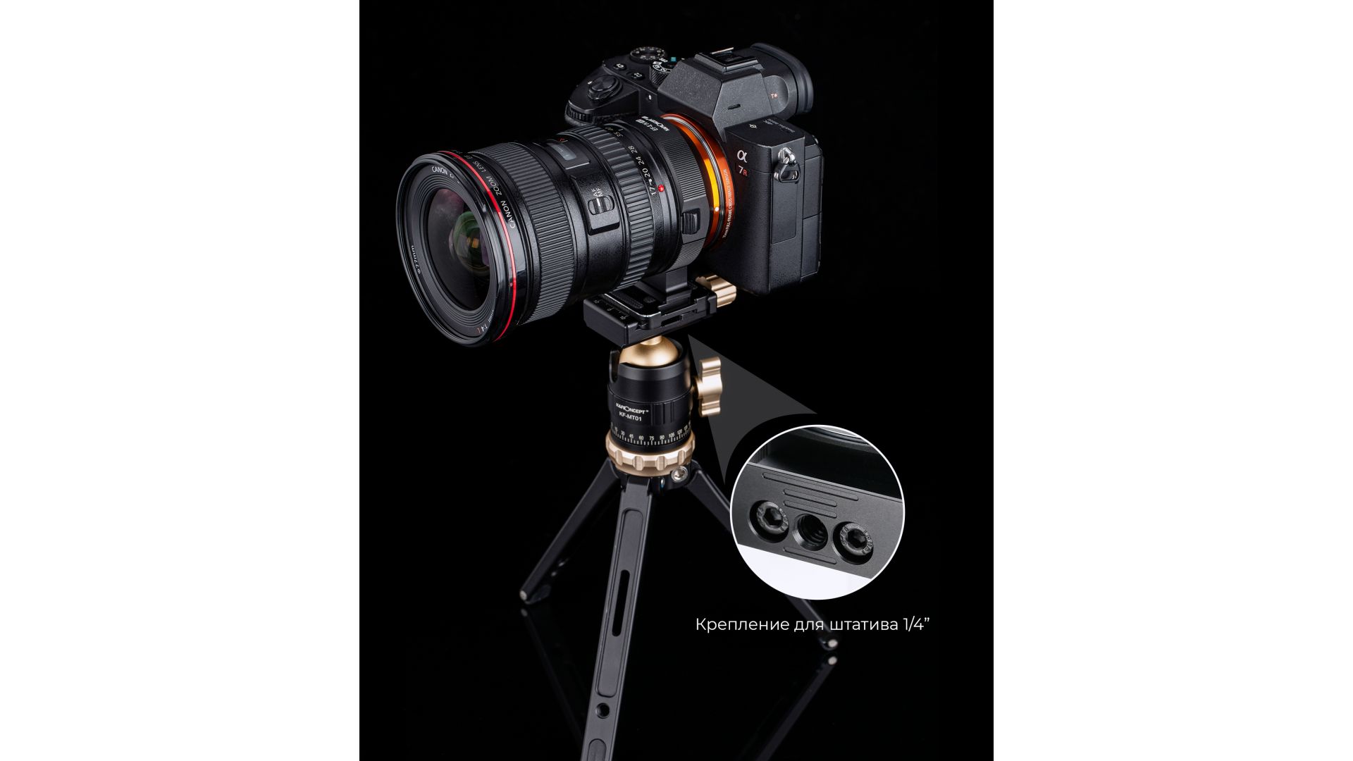 Комплектация:В комплекте с переходником поставляется съёмная "лапа" для установки переходника на штатив с винтом 1/4", передняя и задняя крышки, ключ для снятия/установки штативной "лапы", USB-кабель, инструкция, товарная упаковка.