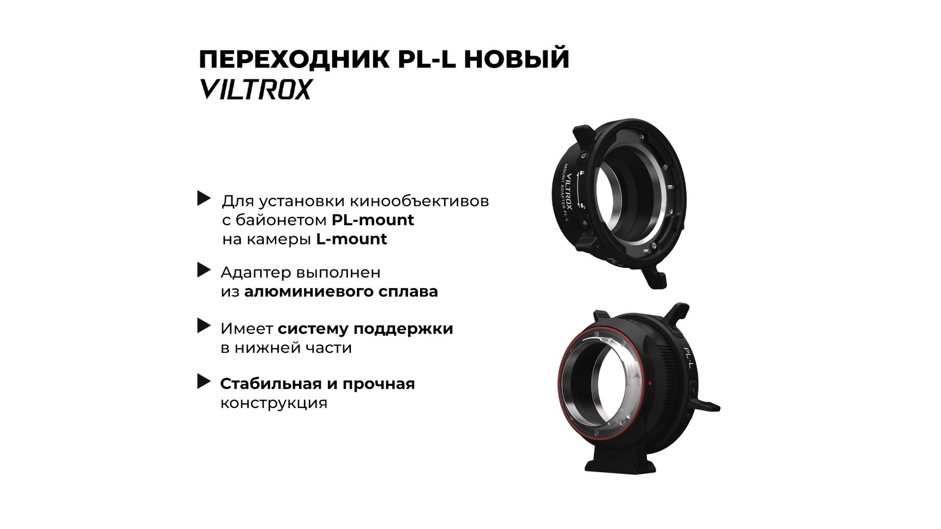 Новый переходник для установки профессиональных кинообъективов PL-mount на камеры c байонетным креплением L-mount (Sigma, Leica и Panasonic). PL-оптика не оснащается системой автофокусировки, поэтому вне зависимости от наличия подобного функционала в камерах L-mount, использовать автоматическую фокусировку не получится.
