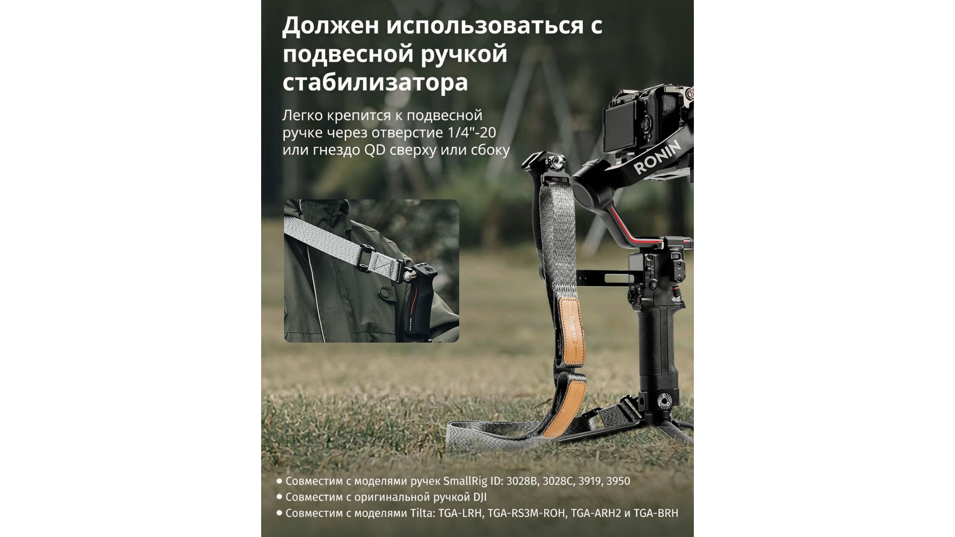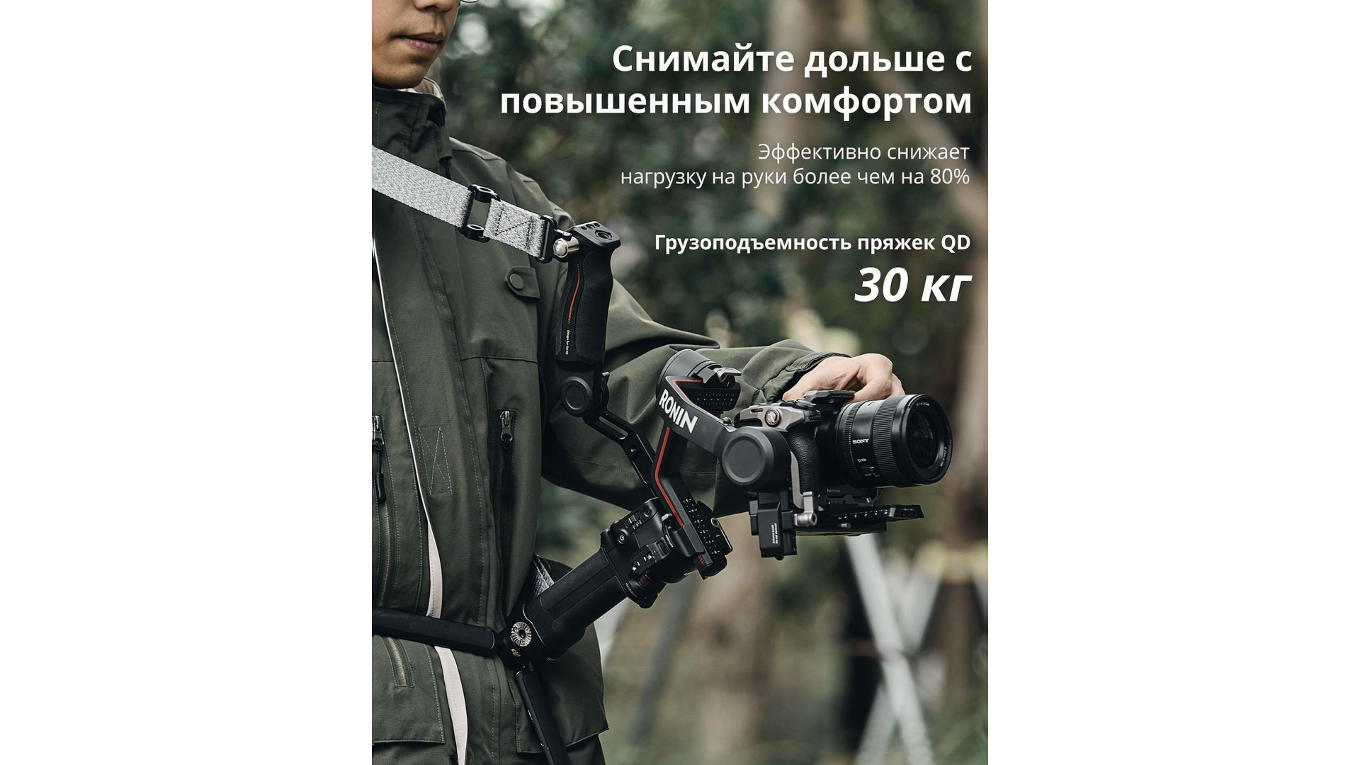 - Ручное крепление: специально разработанный аксессуар для стабилизаторов DJI, который в сочетании с креплением на руку снижает нагрузку на руки более чем на 80%.