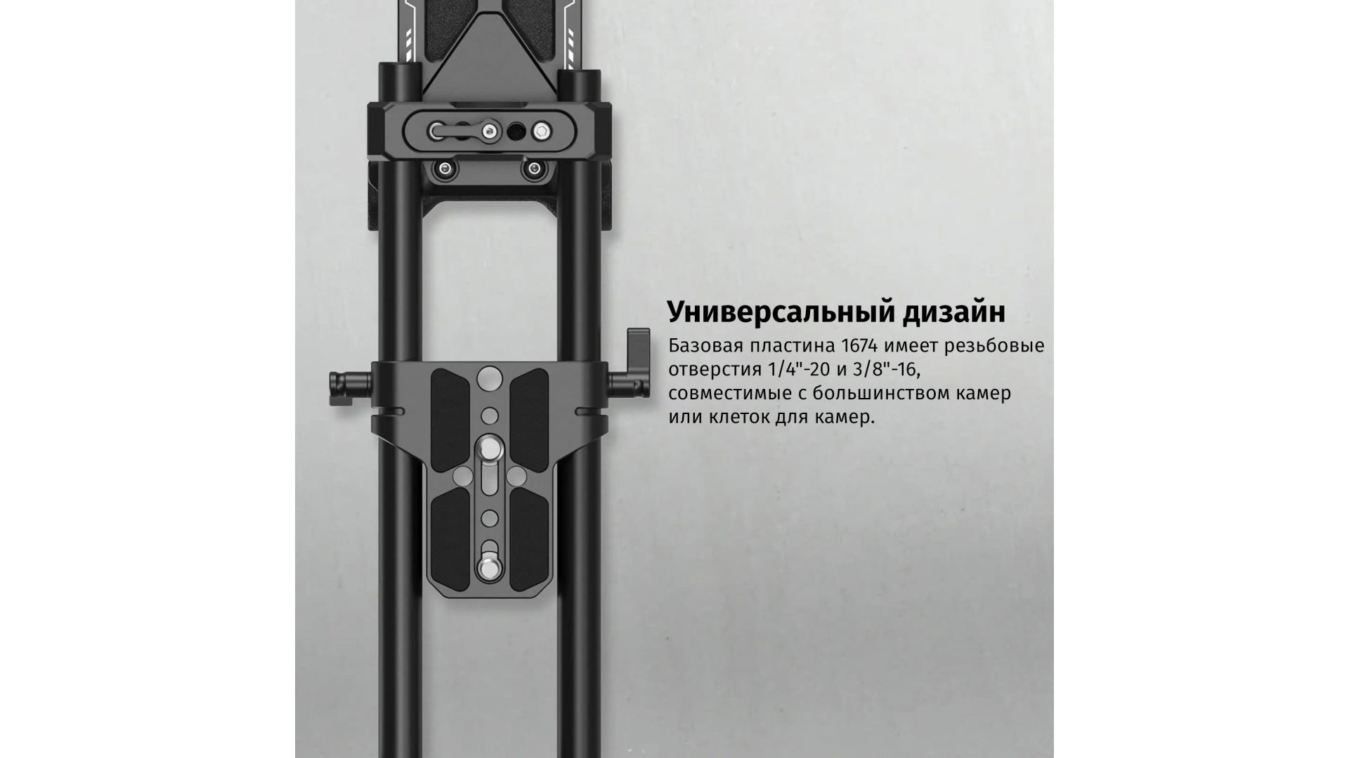 - Несколько отверстий с резьбой 1/4” для установки дополнительных аксессуаров