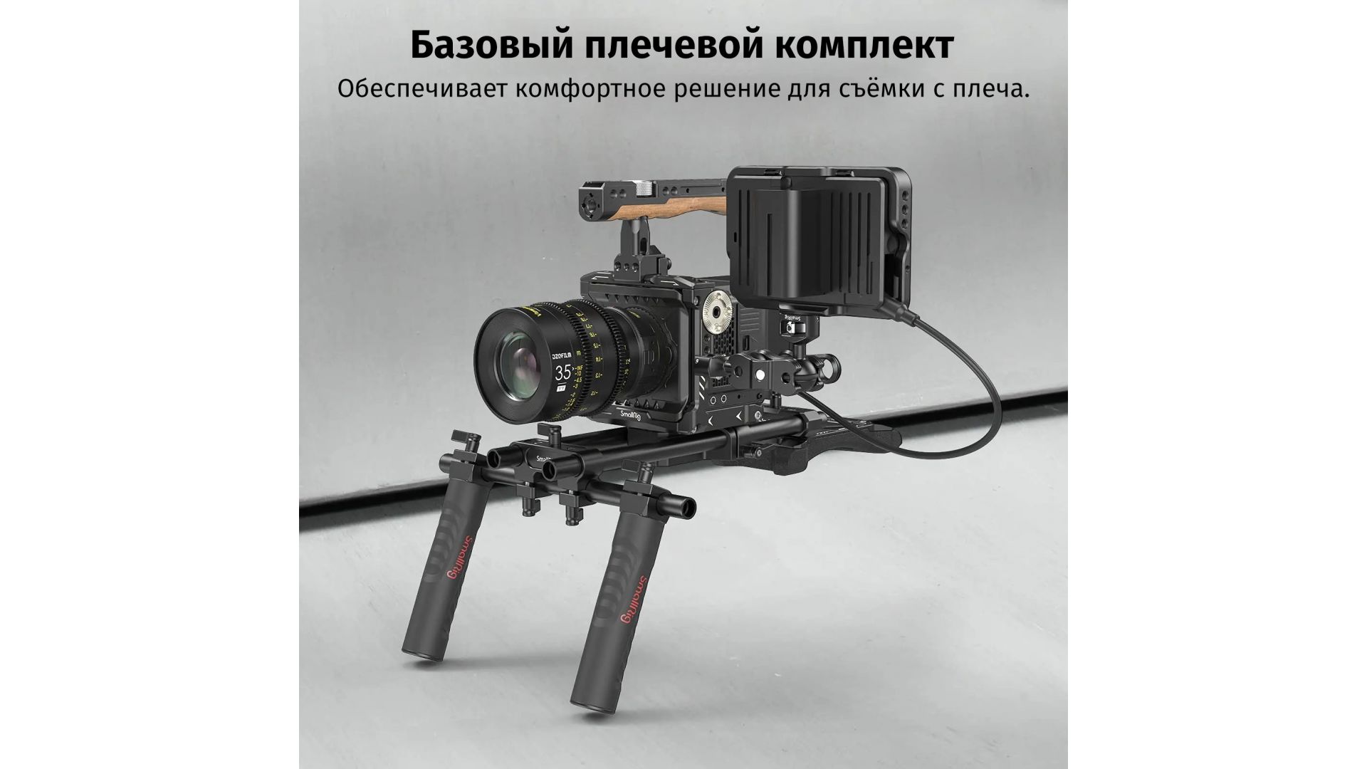 SmallRig 2896C – легкий и компактный плечевой упор. С его помощью можно получать более стабилизированное изображение при съемке в движении и уменьшить нагрузку на руки оператора при длительной съемке. В зависимости от используемого оборудования можно подобрать необходимо положение и наклон ручек.