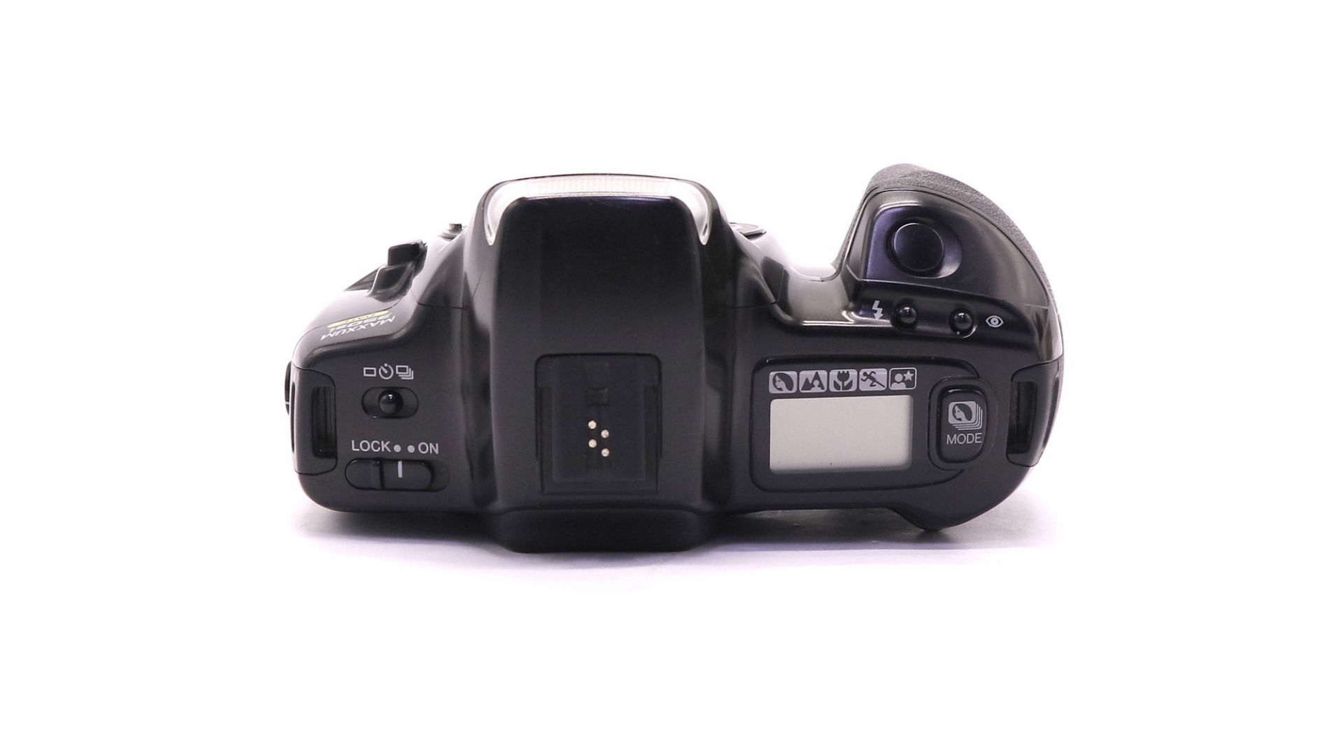 Идеальна для начинающих: автофокус CCD TTL с подсветкой, 8-сегментный экспонометр TTL (1–20 EV), выдержки 30 с — 1/2000 с, 1 кадр/с. Программы: P, портрет, пейзаж, макро, спорт, ночной портрет (без ручного режима). Встроенная вспышка (ведущее число 12), моторная подача/перемотка пленки (ISO 25–5000, DX до 1000).