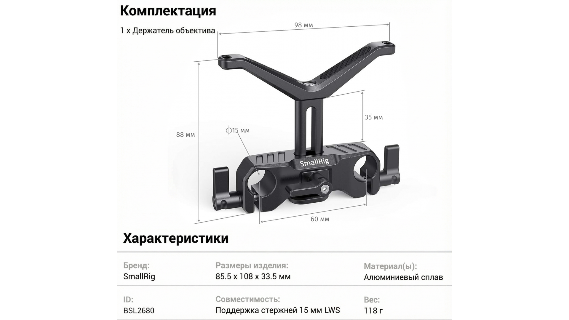 Поддержка объектива SmallRig BSL2680