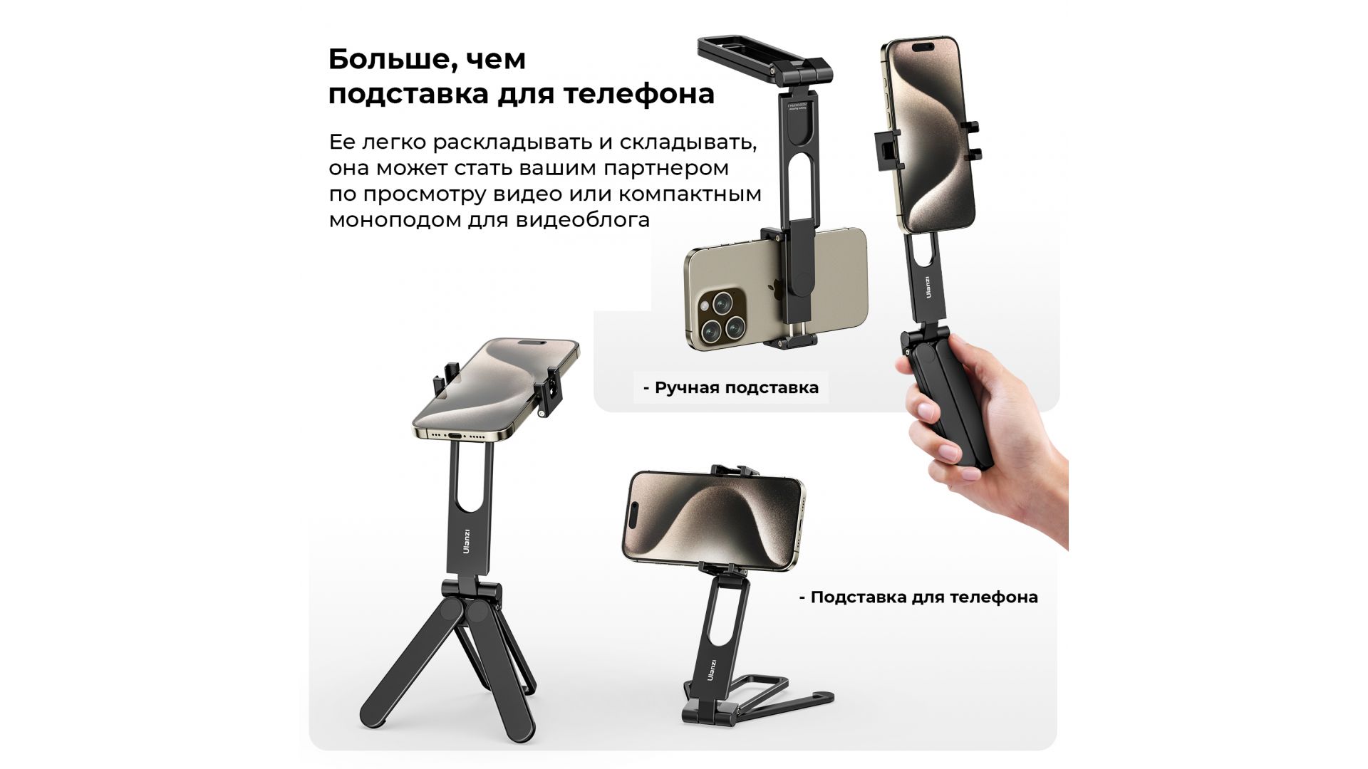Cкладной карманный штатив для телефона Ulanzi MA26 M007 - ваш карманный компаньон для фотосъемки! Легко регулируемый под различные углы, этот штатив плавно переключается между вертикальным и горизонтальным режимами.