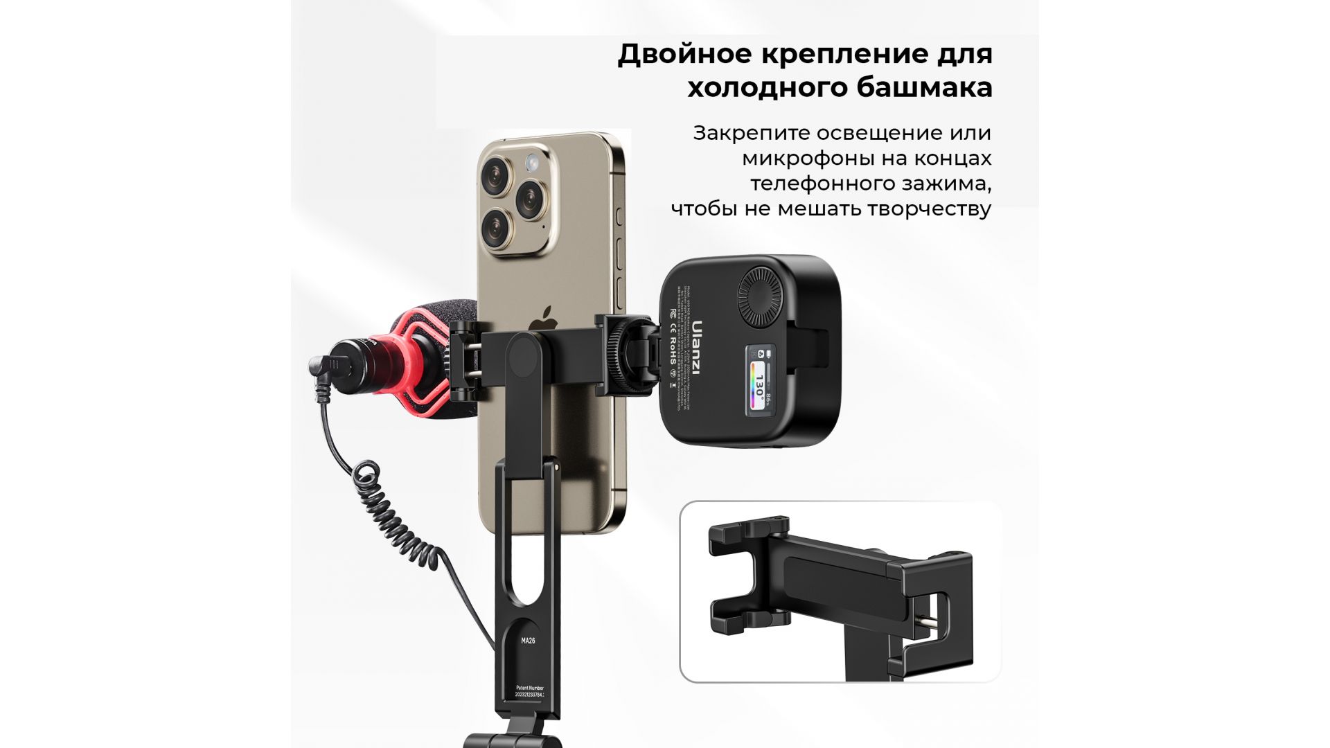 Комплектация:Подставка для смартфона Ulanzi MA26, шестигранный ключ