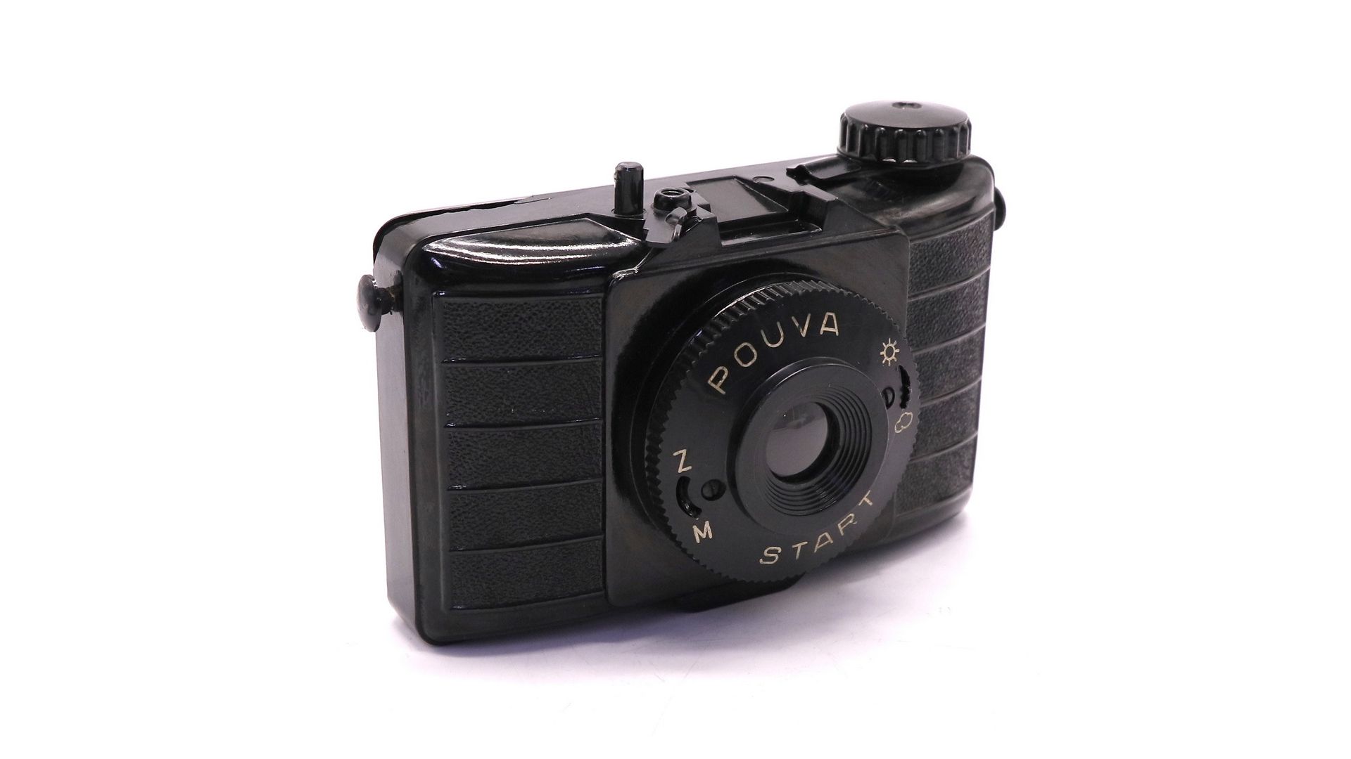 Среднеформатная бокс-камера Pouva Start. Произведена в Германии фабрикой акционерного общества «Karl Pouva AG» в 1954 году. Тип пленки 120, перемотка плёнки производится вручную вращением маховичка. Размер кадра 6х6 см. Затвор: дисковый секторный, без предварительного взвода, имеет две выдержки — «М» («моментальная», 1/30 с) и «Z» («временна́я», соответствующая времени удержания нажатой кнопки спуска затвора). Корпус камеры выполнен из черной пластмассы со съемной задней крышкой.