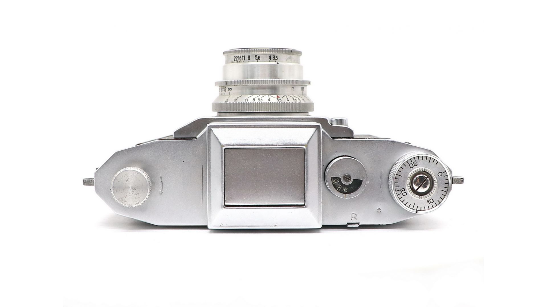 Затвор: шторный, с горизонтальным движением матерчатых шторок. Шкала выдержек — 1/25, 1/50, 1/100, 1/500 с и «B». Взвод затвора и транспортировка плёнки осуществляются одновременно вращением головки в верхней части корпуса справа. Головка оборудована механическим счётчиком кадров. Видоискатель шахтный, с матовым стеклом и откидной лупой; возможно прямое наведение через окно в крышке зеркального видоискателя, возвратное зеркало. Корпус металлический со съёмной задней крышкой. Фотоматериал – пленка типа 135, размер кадра 24×36 мм.