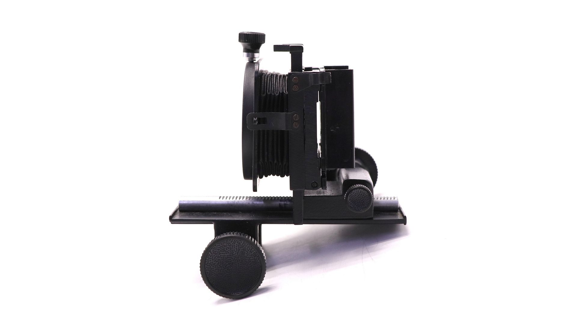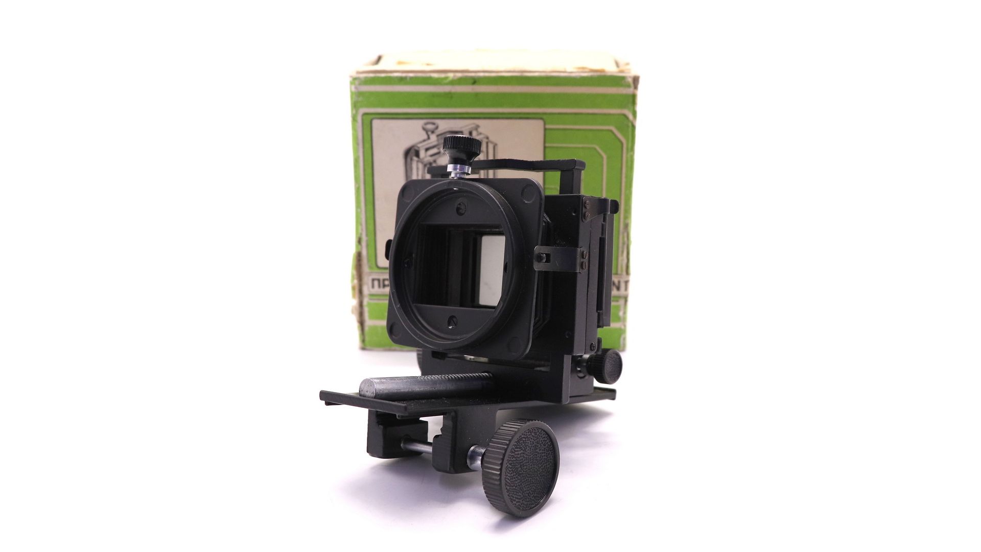 Приставка предназначена в качестве вспомогательного устройства к приставке ПЗФ для пересъемки диапозитивов и диафильмов. Она состоит из двух плоских стоек, установленных на горизонтальной направляющей и соединенных между собой складным мехом. Направляющая приставки ПД жестко соединяется с приставкой ПЗФ, образуя единую составную конструкцию. Одна из стоек выполнена в виде рамки с диапозитиво-держателем, вторая приспособлена для стыковки с объективом, устанавливаемым на стойке ПЗФ Расстояние между стойками может регулироваться с помощью кремальеры. Масштаб изображения при пересъемке - от 0,9:1 до 3:1.