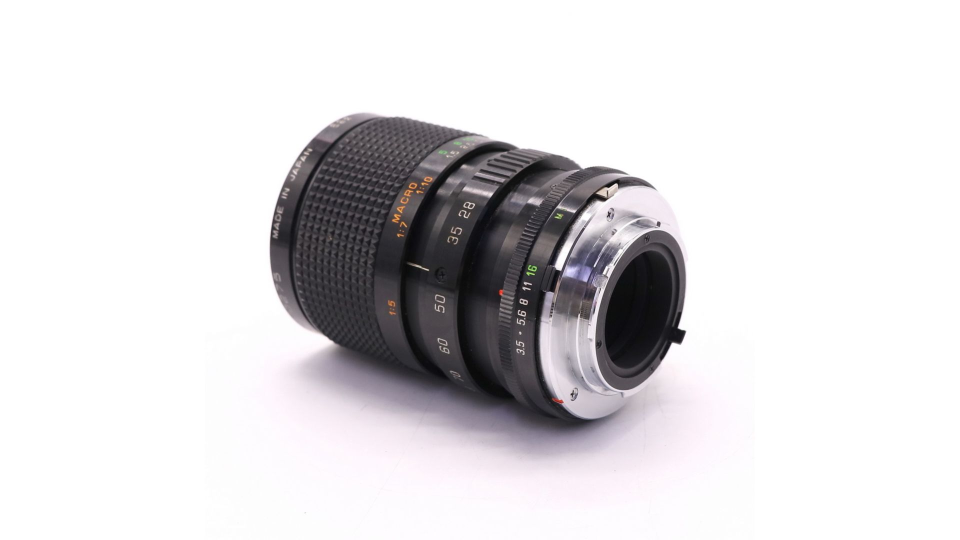Отличный универсальный зум с режимом макро, есть мультипросветление. Оптическая схема - 14 элементов в 11-ти группах. Количество лепестков диафрагмы - 5 штук. Минимальная дистанция фокусировки - 0,6 метров. Конструктив - стекло и металл. Не хроматит. Отлично подойдет для решения разных фотозадач.