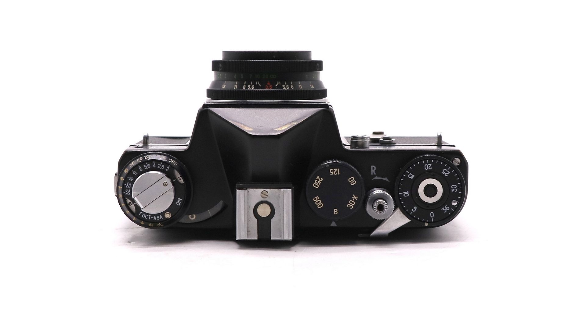 – Технические преимущества: механический затвор (1–1/500 с + «В»); TTL‑экспонометр; резьба M42×1 для оптики; работа без батареек; фокусное расстояние объектива — 50 мм; диафрагма — f/3,5; высокая разрешающая способность объектива.