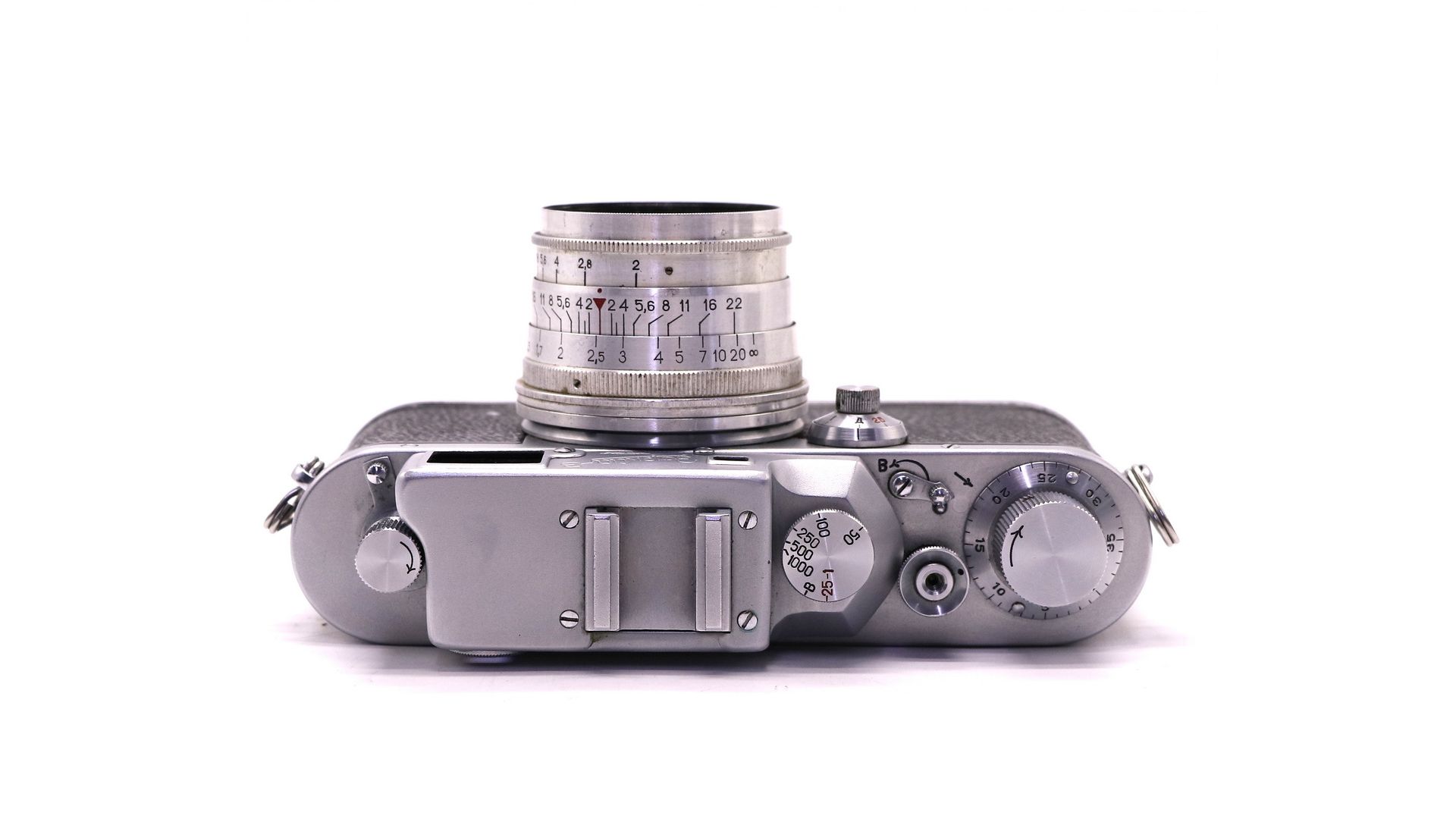Дальномерный фотоаппарат с механическим затвором (1–1/1000 с, В). Объектив «Юпитер‑8» 2/50 мм отличается высокой светосилой и пластичным рисунком. Точная фокусировка через дальномер, совместимость с резьбой М39.