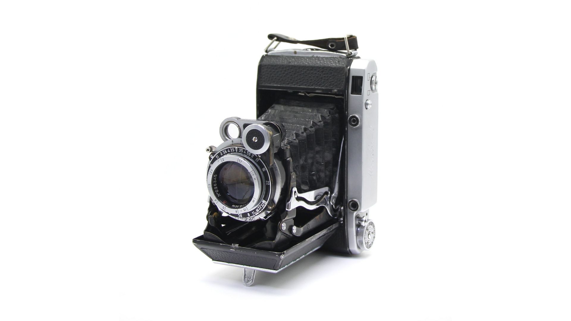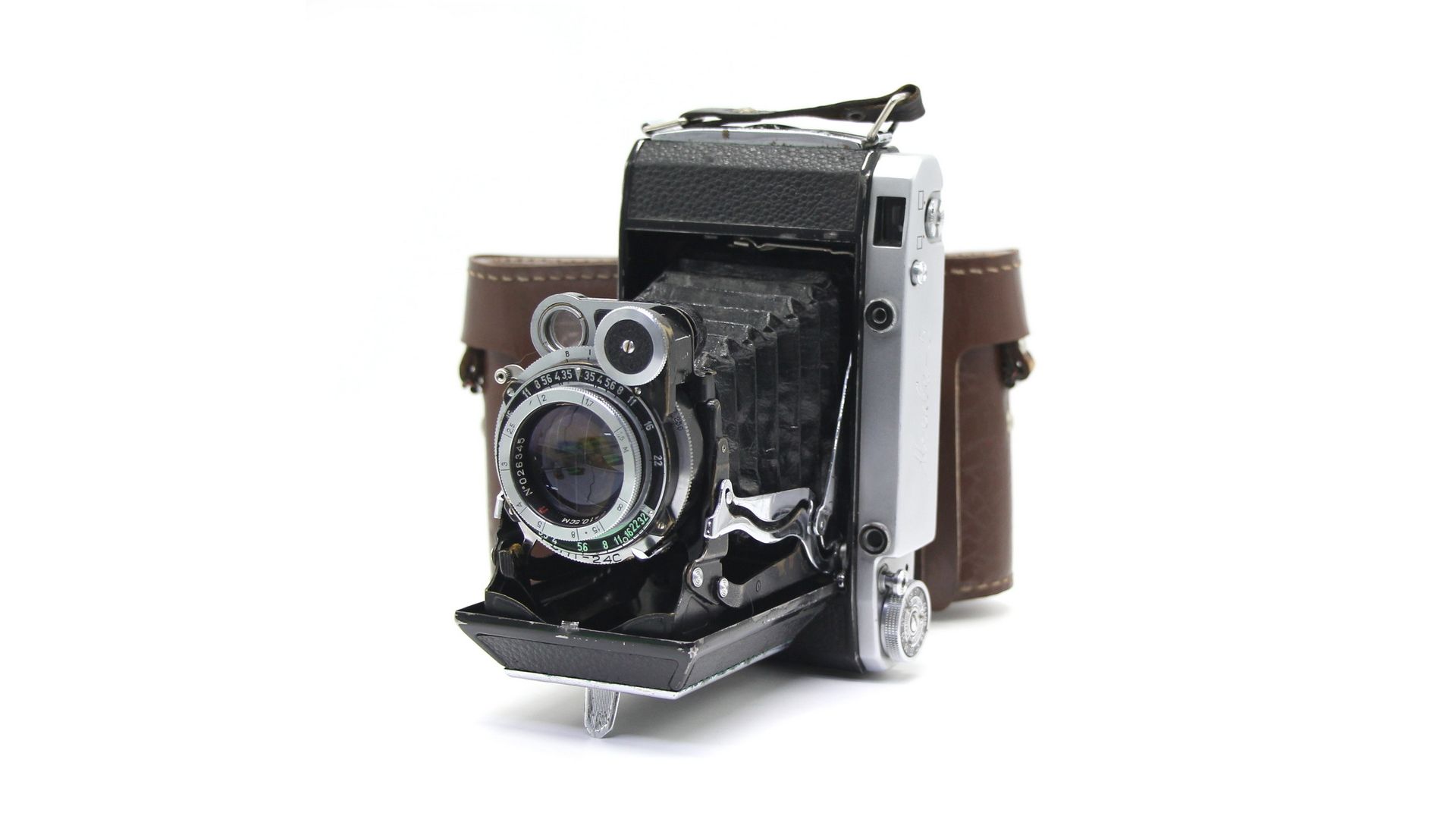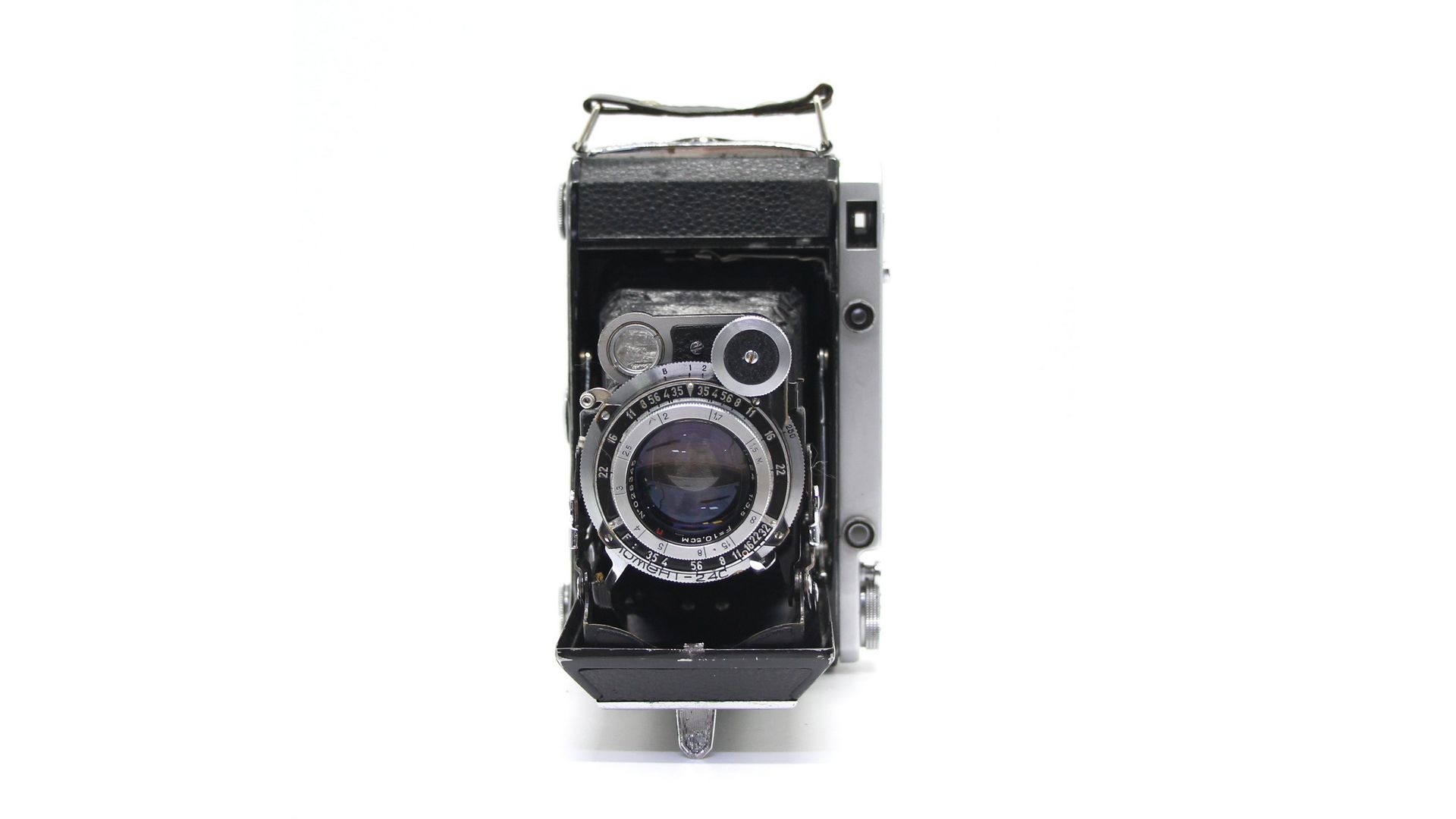Используется пленка типа 120 (рольфильм), создавая крупноформатные кадры с высоким качеством изображения