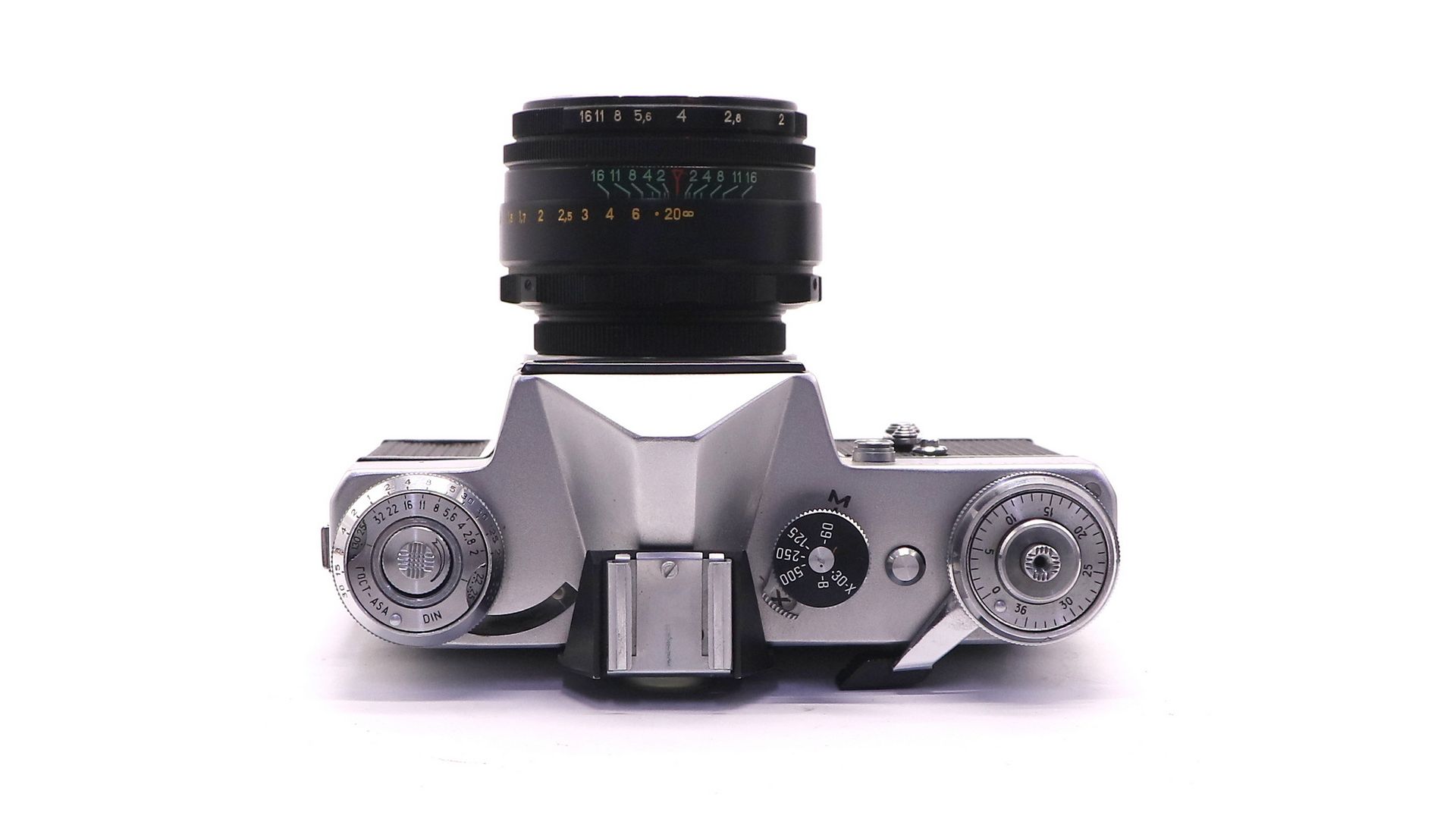Цельнолитой металлический корпус, зеркальный видоискатель с несъёмной пентапризмой и матовым стеклом. Поле зрения видоискателя 20x28 мм. Механический затвор. Конструкция фотоаппарата чрезвычайно проста, при этом качество фотографий отличное. Резьбовое соединение М42.