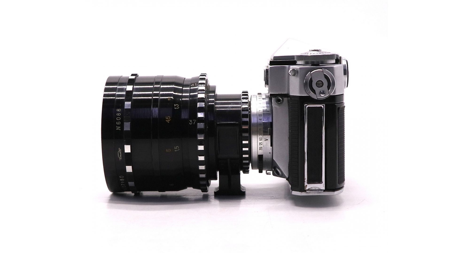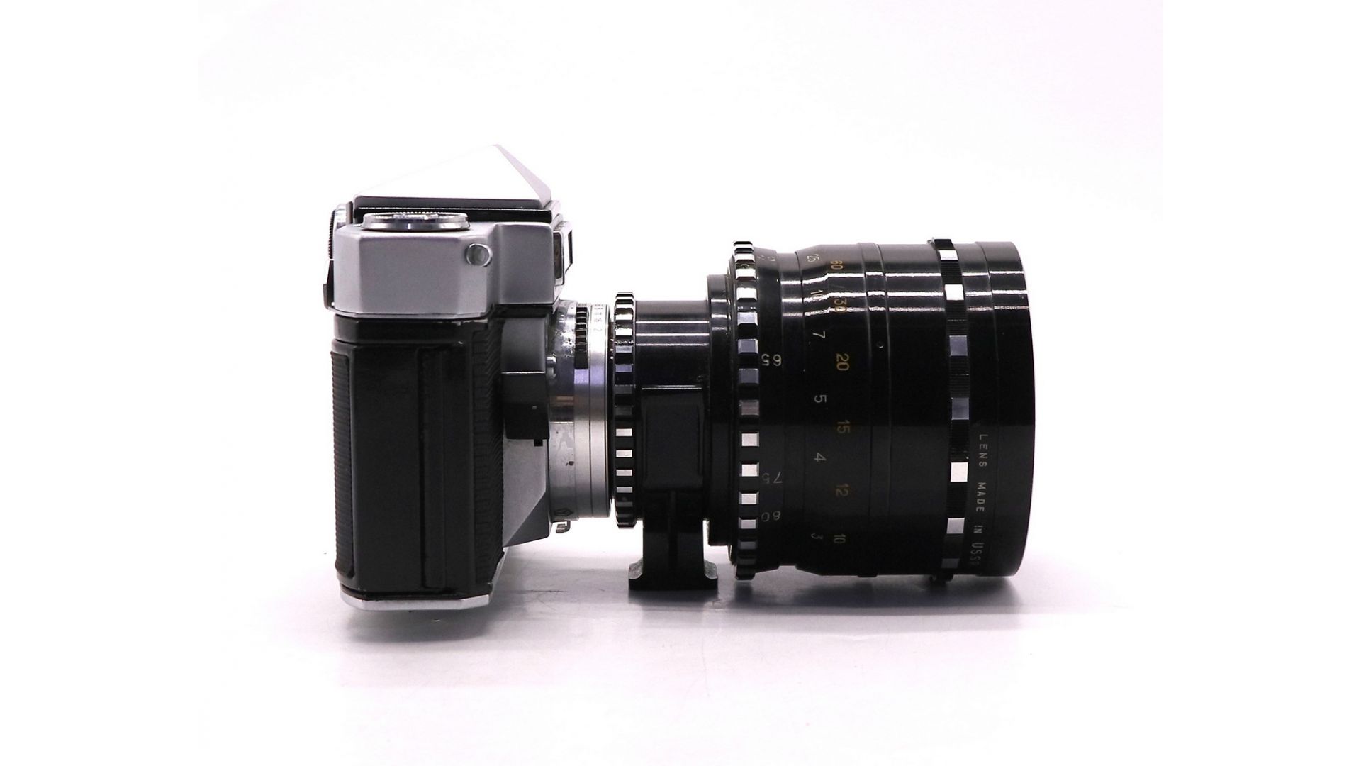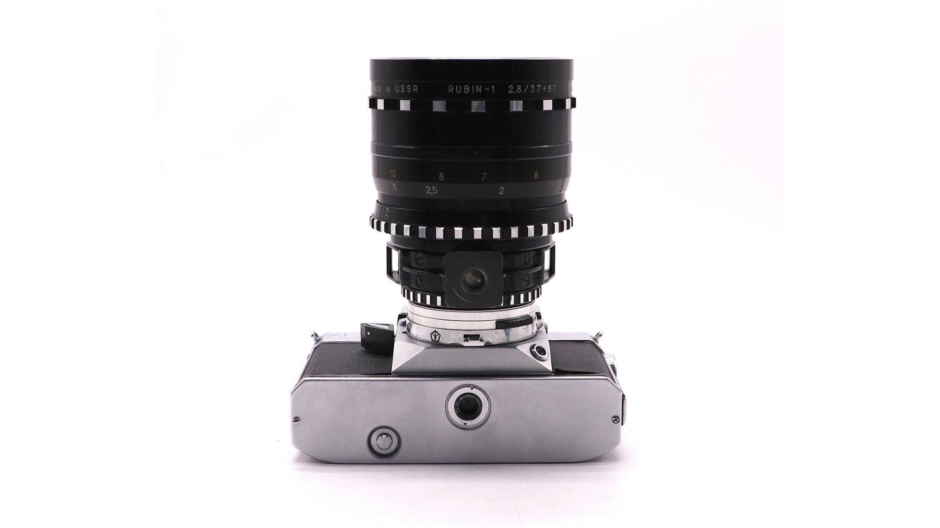 Комплектация:Кофр, объектив Рубин-1, пентапризма, крышка объектива.