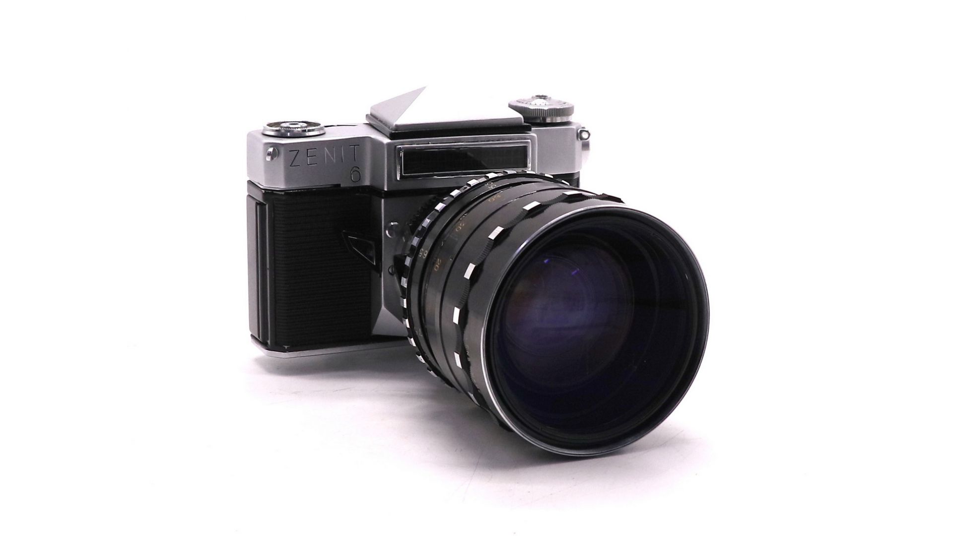 Зенит-6 имеет центральный затвор, который отрабатывает выдержки 1-1/500с и от руки, счетчик кадров, который сбрасывается при открывании крышки, встроенный сопряжённый экспонометр с селеновым фотоэлементом и автоматическую заслонку кадрового окна. Фотоаппарат оснащен объективом Рубин-1, который является объективом с переменным фокусным расстоянием. Диапазон фокусных расстояний не очень широкий, но зато отлично сбалансированный — 37-80 мм. Ровно то, что нужно большинству фотолюбителей!
